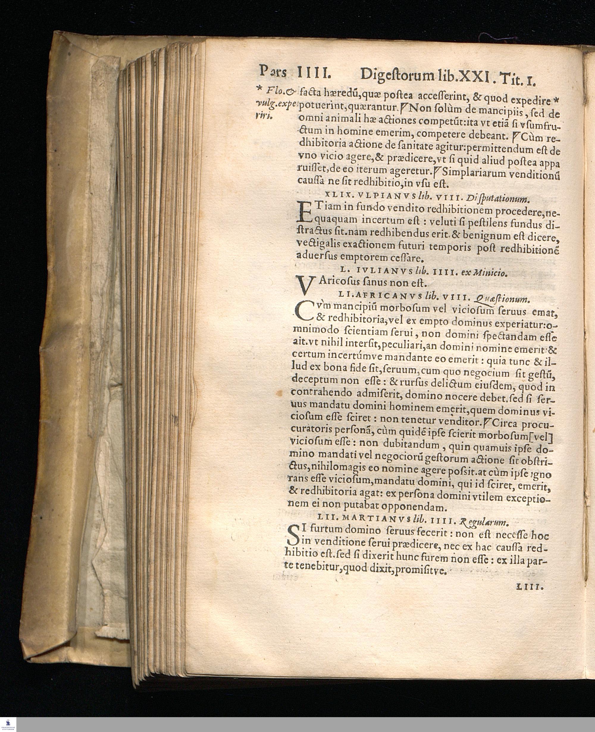 DIGESTORVM SEV Pandectarum Lib. vigesimus primus.