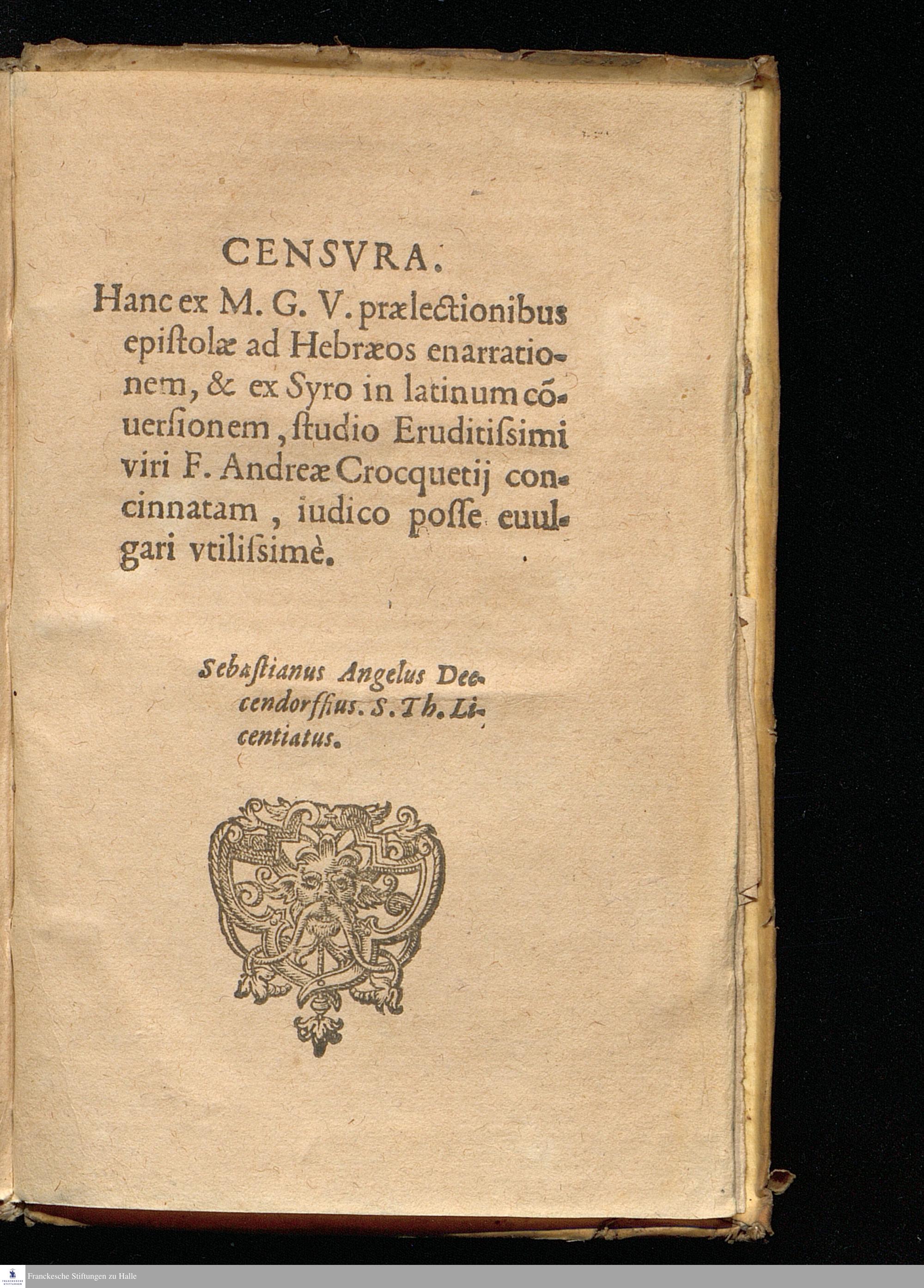 MATTHÆI || GALENI, S. T. || DOCTORIS, ET || APVD DVACENSES || CANCELLARII, || COMMENTARIVS || In D. PAVLI ad Hebræos || Epistolam. || Vnà cum eiusdem è Syro in Latinum || conuersione. ||