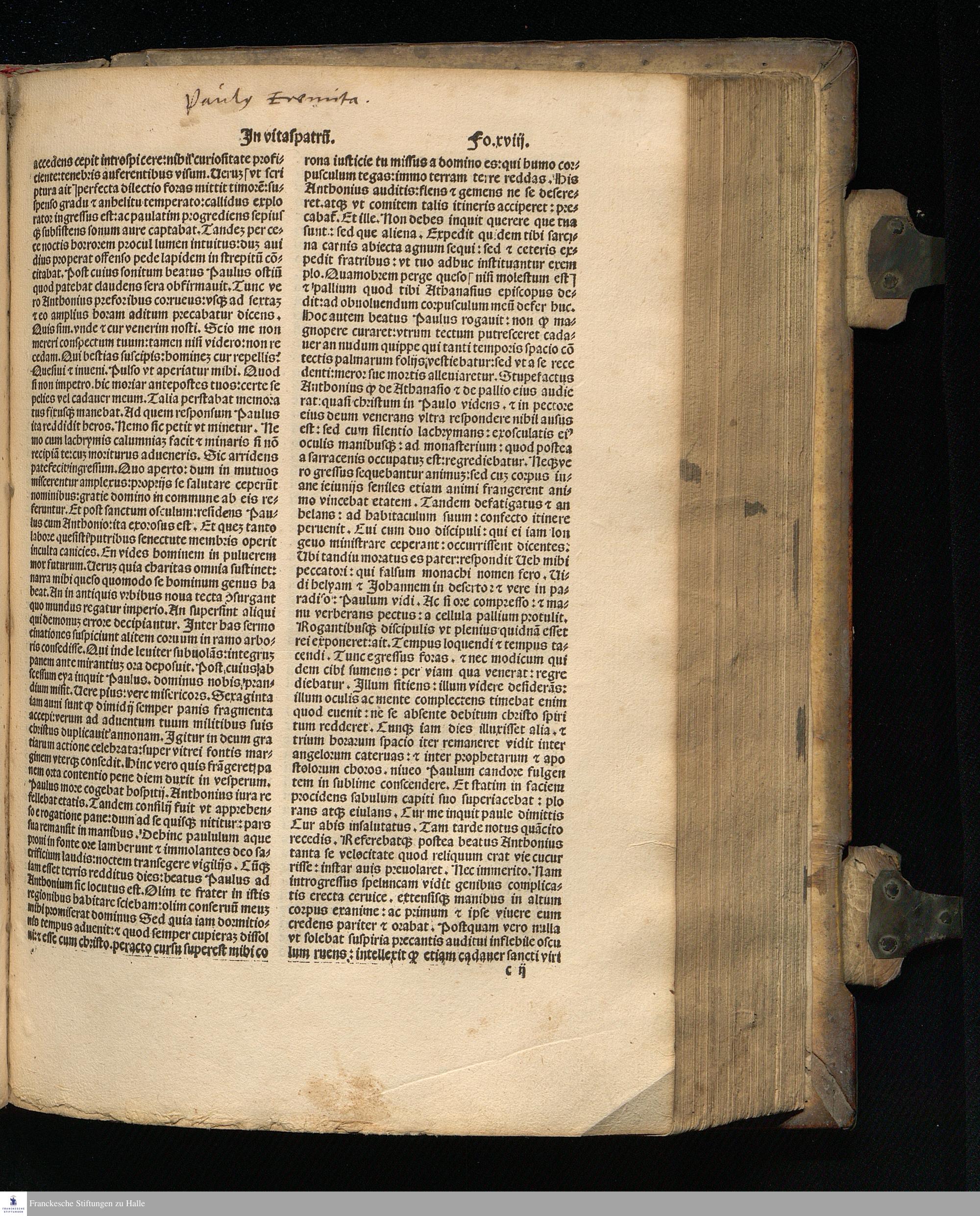 Incipit prologus sancti Hieronymi Cardinalis presbytri in libros Vitaspatrum sanctorum Egyptiorum: etiam corum qui in Scitbia Thebaida atque Mesopotamia morati sunt: non solum quos oculis vidit: maximoque labore conspexit: verum et qui plura a fide dignis relata conscripsit no tabili diligentia. Denique aliorum etiam autenticorum libellos fideliter e greco in latinum transtulit: et ab alijs translate pro sui perfectione buic operi inseruit.