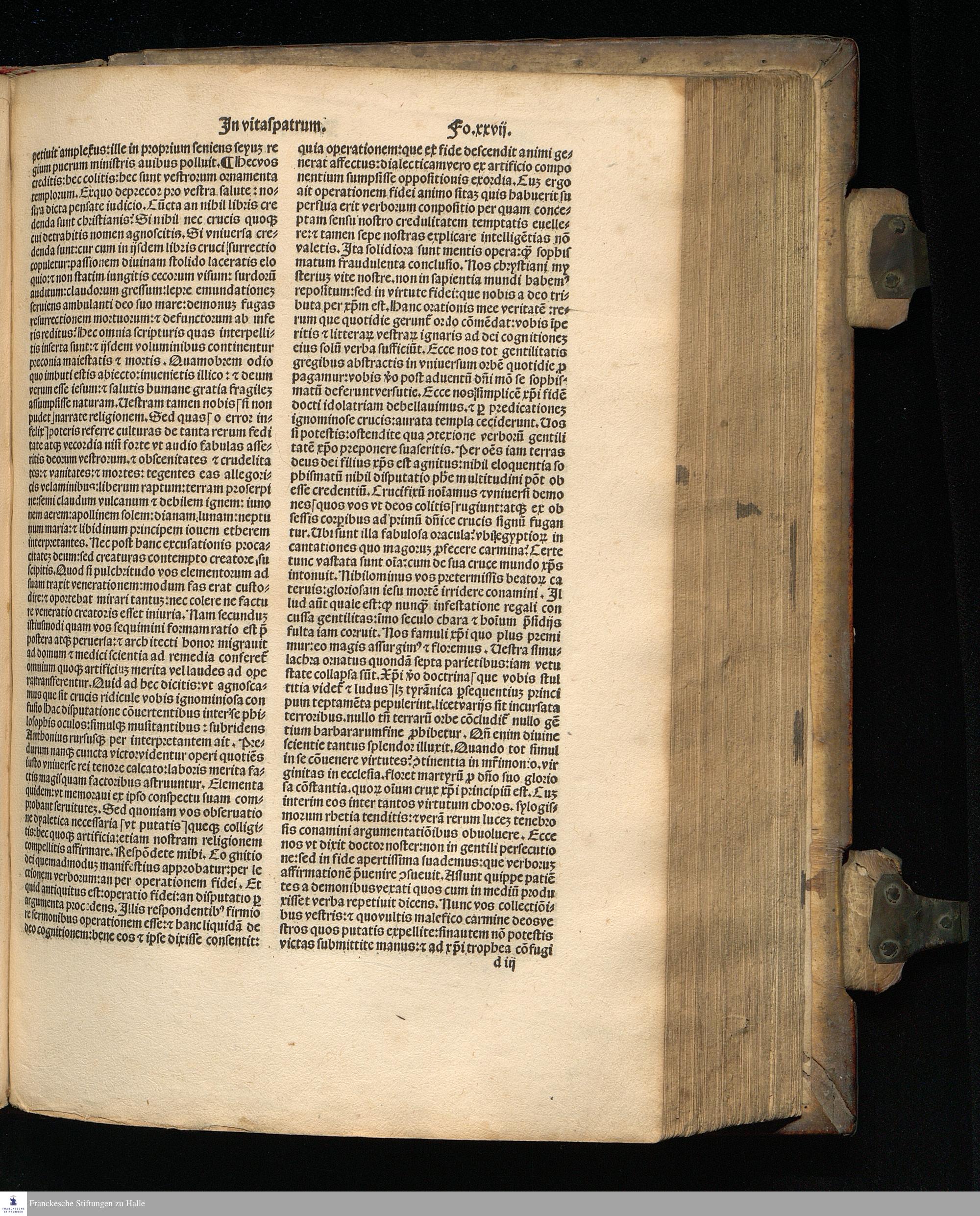 Incipit prologus sancti Hieronymi Cardinalis presbytri in libros Vitaspatrum sanctorum Egyptiorum: etiam corum qui in Scitbia Thebaida atque Mesopotamia morati sunt: non solum quos oculis vidit: maximoque labore conspexit: verum et qui plura a fide dignis relata conscripsit no tabili diligentia. Denique aliorum etiam autenticorum libellos fideliter e greco in latinum transtulit: et ab alijs translate pro sui perfectione buic operi inseruit.