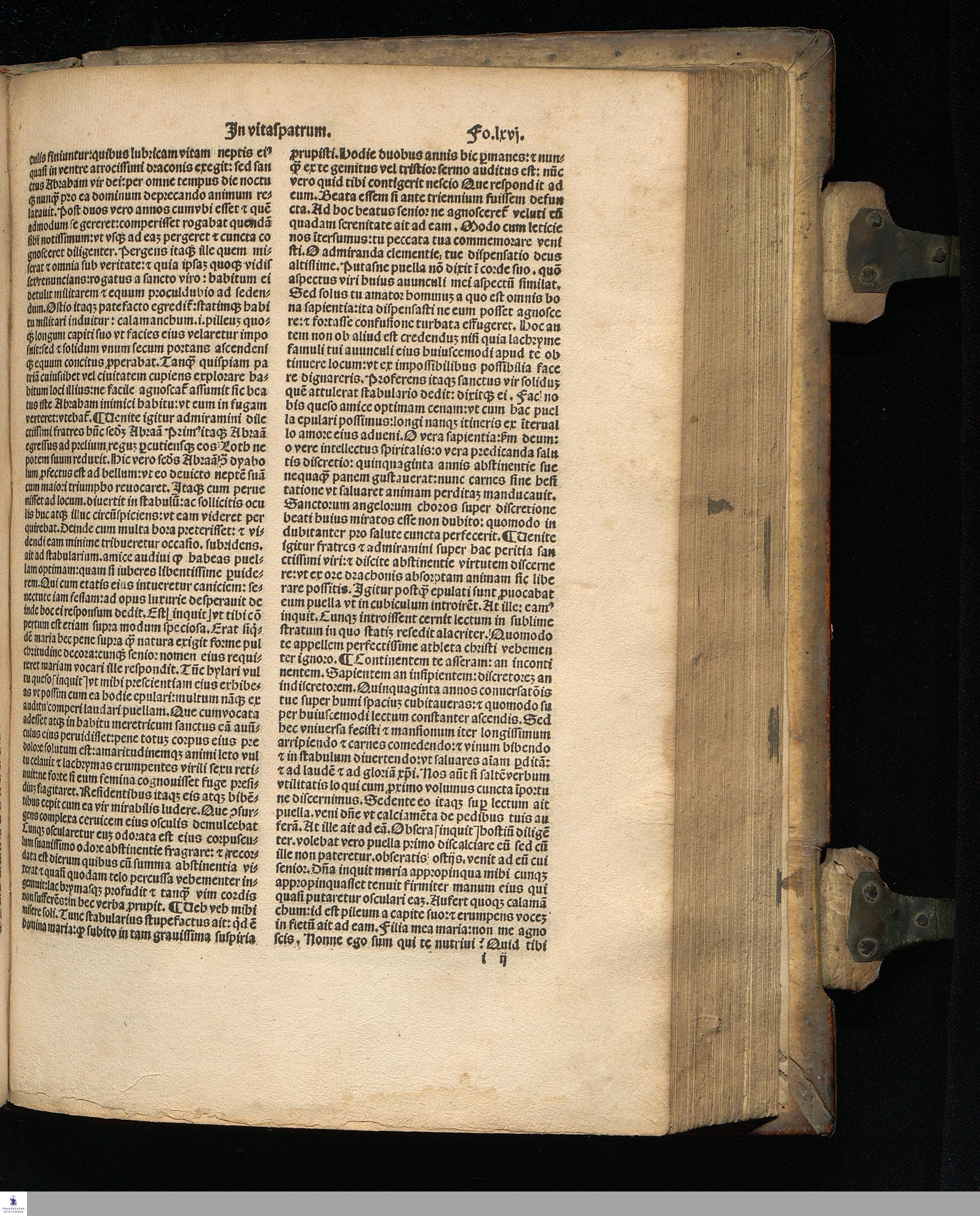 Incipit prologus sancti Hieronymi Cardinalis presbytri in libros Vitaspatrum sanctorum Egyptiorum: etiam corum qui in Scitbia Thebaida atque Mesopotamia morati sunt: non solum quos oculis vidit: maximoque labore conspexit: verum et qui plura a fide dignis relata conscripsit no tabili diligentia. Denique aliorum etiam autenticorum libellos fideliter e greco in latinum transtulit: et ab alijs translate pro sui perfectione buic operi inseruit.