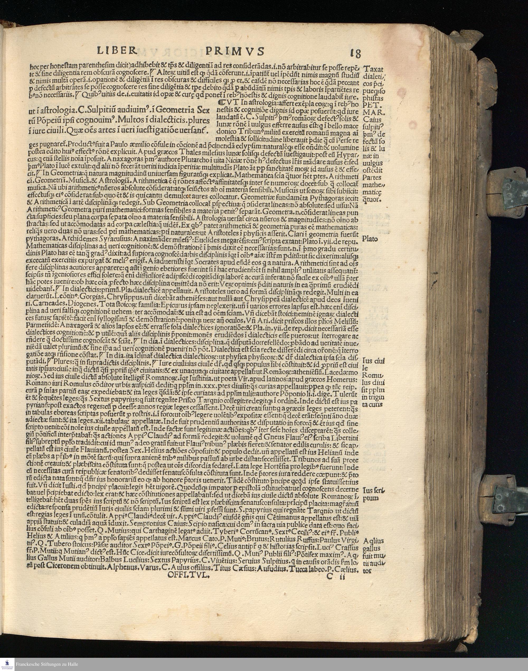 TVLLIVS DE || Officijs: de amicitia: de senectute: nec || non Paradoxa eiusdem: opus Bene||dicti Brugnoli studio emaculatum || additis graecis quae deerant || cum Interpraetatione super || officijs Petri Marsi Francisci Matu||rantij necnon Jodoci Badij Ascensij. || In amicitia vero Omni || boni eiusdemq[ue] || Ascensij: Martini Phi=||letici [et] Ascensij in Senectute. Adiun=||ctis praeterea com[m]entarijs eiusdem || Francisci: Omniboni: Ascensijq[ue] || in vltimum paradoxon || Quod latinorum nullius ad haec vsq[ue] || te[m]pora ausus est enucleare. ... || Cum Gratia [et] Priuilegio.