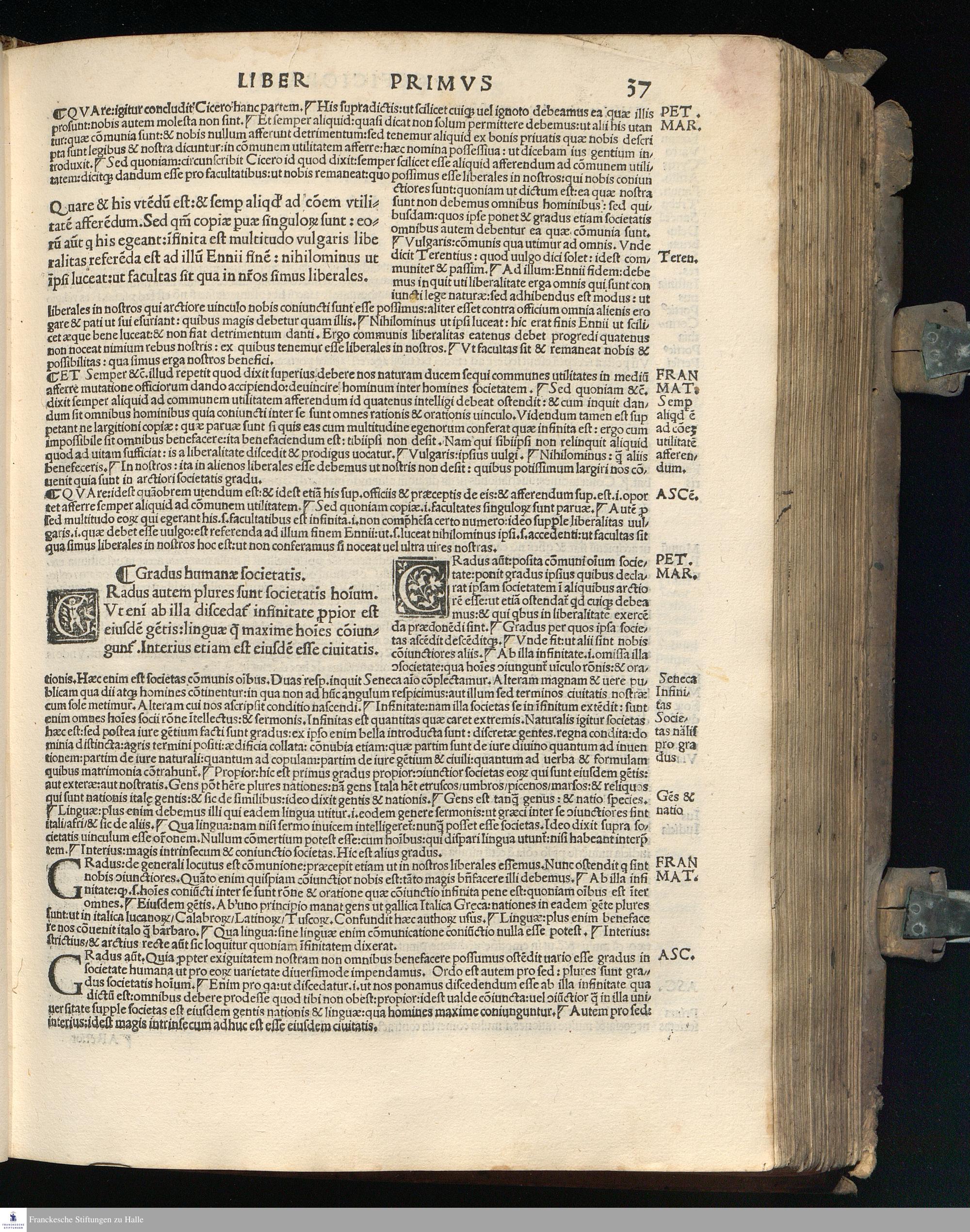TVLLIVS DE || Officijs: de amicitia: de senectute: nec || non Paradoxa eiusdem: opus Bene||dicti Brugnoli studio emaculatum || additis graecis quae deerant || cum Interpraetatione super || officijs Petri Marsi Francisci Matu||rantij necnon Jodoci Badij Ascensij. || In amicitia vero Omni || boni eiusdemq[ue] || Ascensij: Martini Phi=||letici [et] Ascensij in Senectute. Adiun=||ctis praeterea com[m]entarijs eiusdem || Francisci: Omniboni: Ascensijq[ue] || in vltimum paradoxon || Quod latinorum nullius ad haec vsq[ue] || te[m]pora ausus est enucleare. ... || Cum Gratia [et] Priuilegio.
