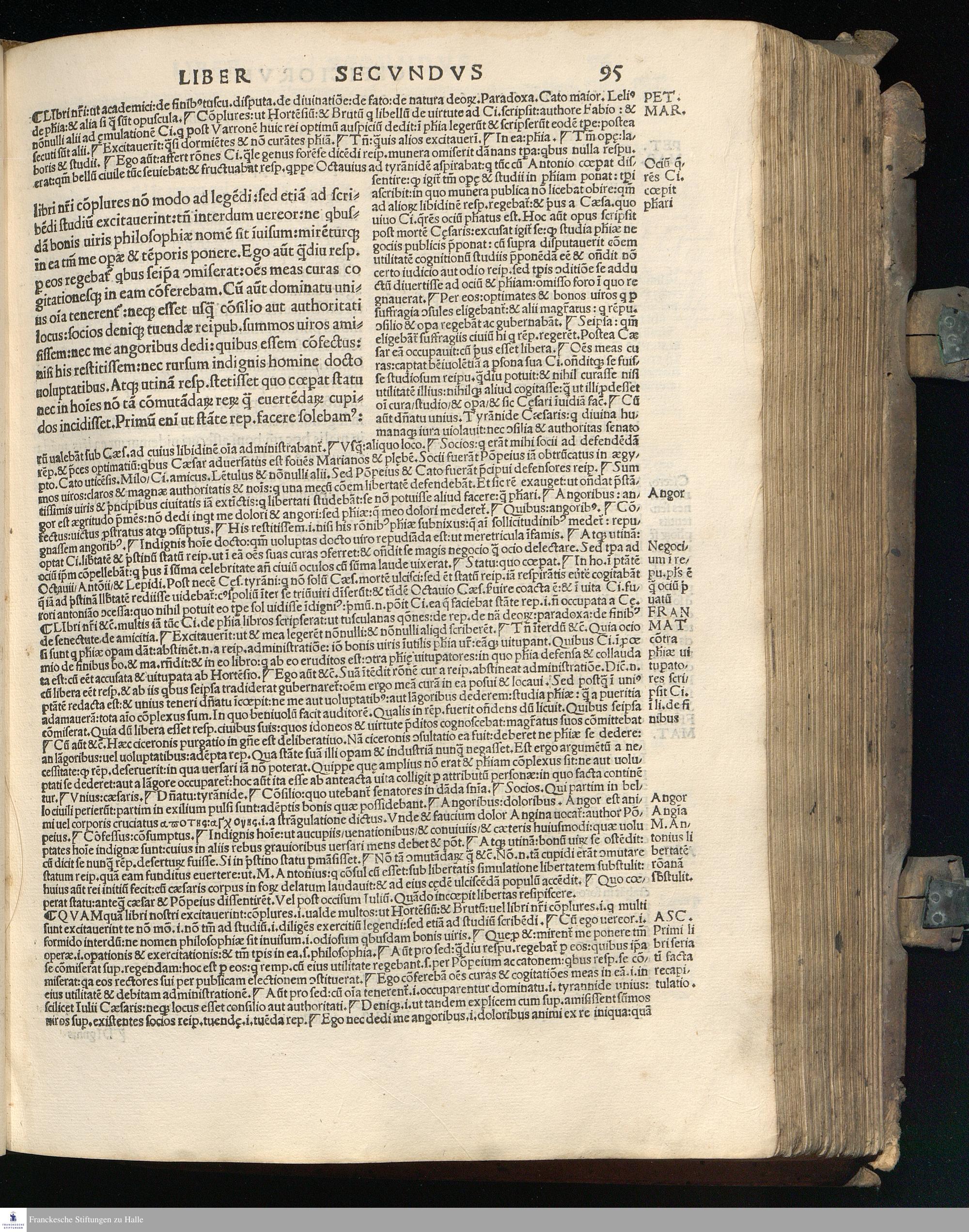 TVLLIVS DE || Officijs: de amicitia: de senectute: nec || non Paradoxa eiusdem: opus Bene||dicti Brugnoli studio emaculatum || additis graecis quae deerant || cum Interpraetatione super || officijs Petri Marsi Francisci Matu||rantij necnon Jodoci Badij Ascensij. || In amicitia vero Omni || boni eiusdemq[ue] || Ascensij: Martini Phi=||letici [et] Ascensij in Senectute. Adiun=||ctis praeterea com[m]entarijs eiusdem || Francisci: Omniboni: Ascensijq[ue] || in vltimum paradoxon || Quod latinorum nullius ad haec vsq[ue] || te[m]pora ausus est enucleare. ... || Cum Gratia [et] Priuilegio.
