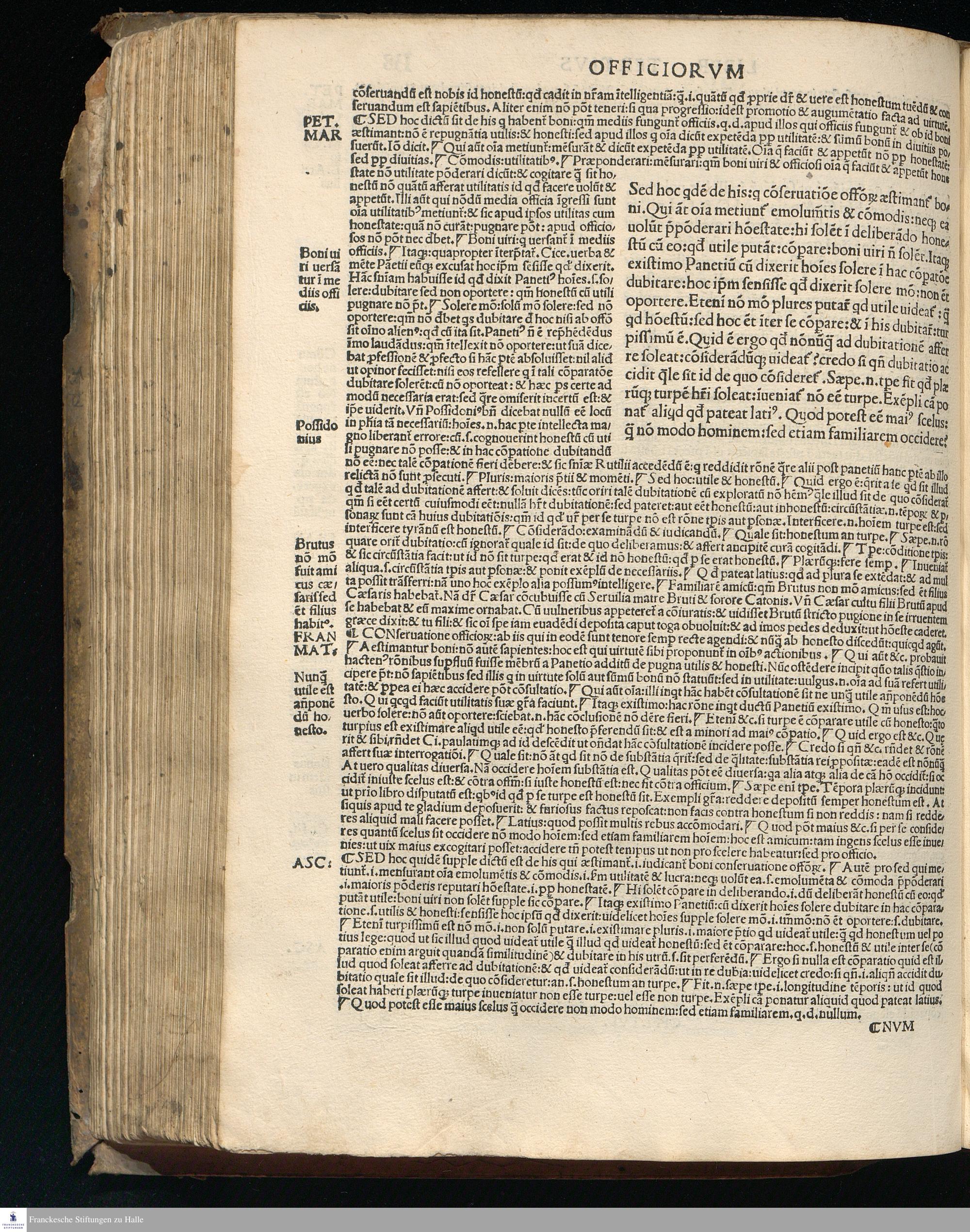 TVLLIVS DE || Officijs: de amicitia: de senectute: nec || non Paradoxa eiusdem: opus Bene||dicti Brugnoli studio emaculatum || additis graecis quae deerant || cum Interpraetatione super || officijs Petri Marsi Francisci Matu||rantij necnon Jodoci Badij Ascensij. || In amicitia vero Omni || boni eiusdemq[ue] || Ascensij: Martini Phi=||letici [et] Ascensij in Senectute. Adiun=||ctis praeterea com[m]entarijs eiusdem || Francisci: Omniboni: Ascensijq[ue] || in vltimum paradoxon || Quod latinorum nullius ad haec vsq[ue] || te[m]pora ausus est enucleare. ... || Cum Gratia [et] Priuilegio.