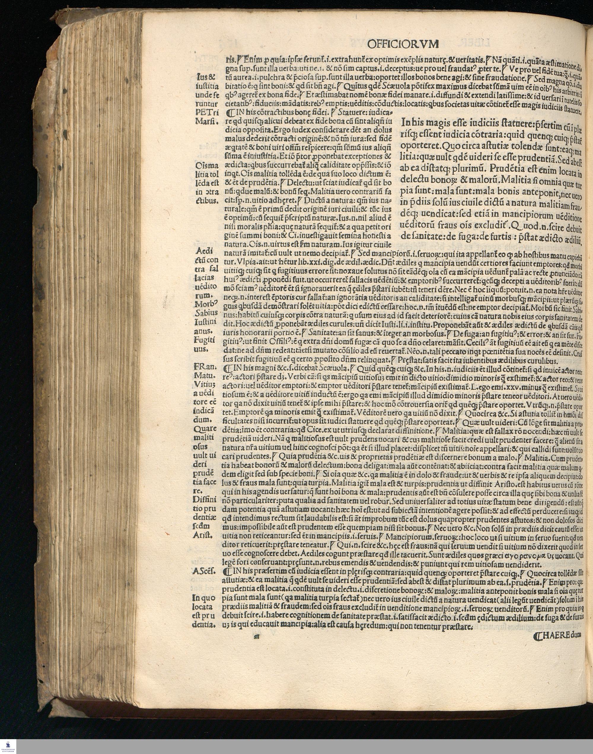 TVLLIVS DE || Officijs: de amicitia: de senectute: nec || non Paradoxa eiusdem: opus Bene||dicti Brugnoli studio emaculatum || additis graecis quae deerant || cum Interpraetatione super || officijs Petri Marsi Francisci Matu||rantij necnon Jodoci Badij Ascensij. || In amicitia vero Omni || boni eiusdemq[ue] || Ascensij: Martini Phi=||letici [et] Ascensij in Senectute. Adiun=||ctis praeterea com[m]entarijs eiusdem || Francisci: Omniboni: Ascensijq[ue] || in vltimum paradoxon || Quod latinorum nullius ad haec vsq[ue] || te[m]pora ausus est enucleare. ... || Cum Gratia [et] Priuilegio.