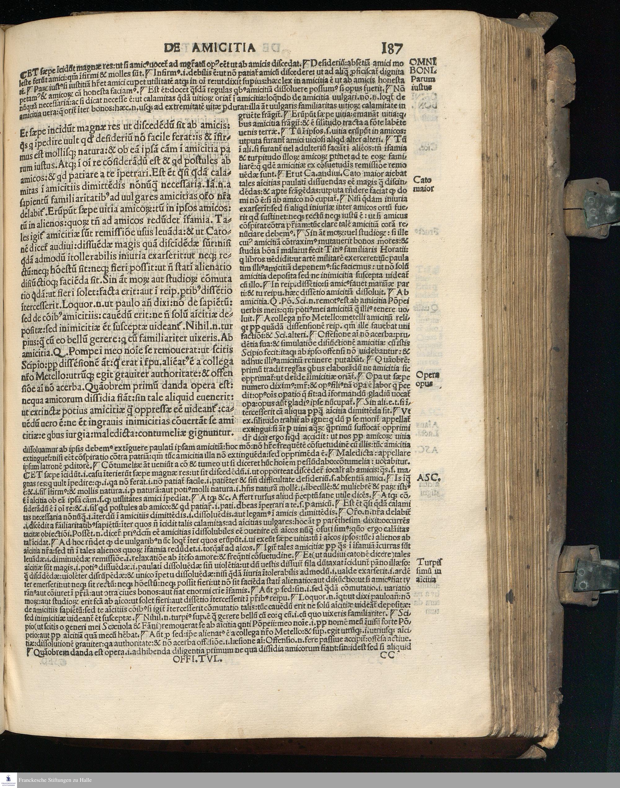 TVLLIVS DE || Officijs: de amicitia: de senectute: nec || non Paradoxa eiusdem: opus Bene||dicti Brugnoli studio emaculatum || additis graecis quae deerant || cum Interpraetatione super || officijs Petri Marsi Francisci Matu||rantij necnon Jodoci Badij Ascensij. || In amicitia vero Omni || boni eiusdemq[ue] || Ascensij: Martini Phi=||letici [et] Ascensij in Senectute. Adiun=||ctis praeterea com[m]entarijs eiusdem || Francisci: Omniboni: Ascensijq[ue] || in vltimum paradoxon || Quod latinorum nullius ad haec vsq[ue] || te[m]pora ausus est enucleare. ... || Cum Gratia [et] Priuilegio.