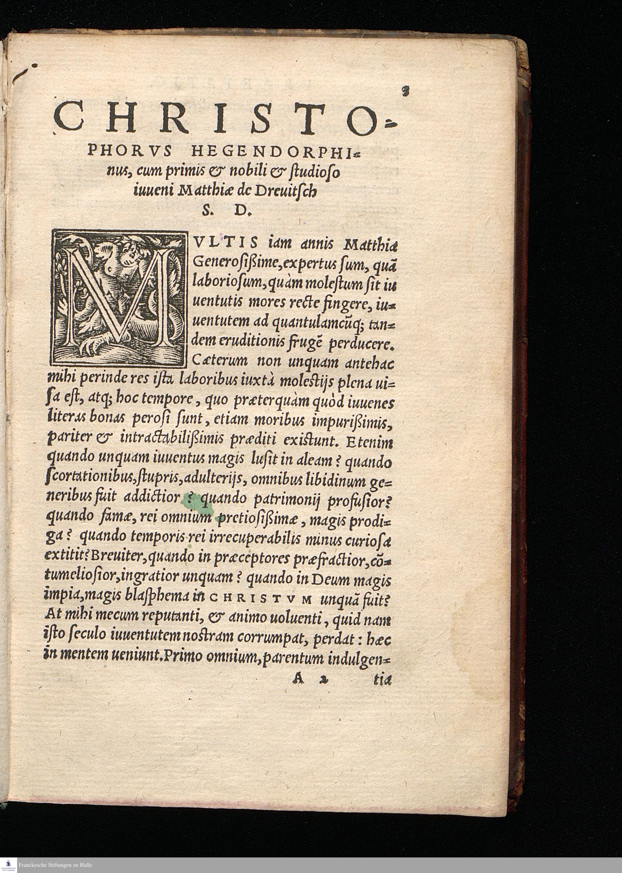 DE VITA IV||VENTVTIS INSTI=||TVENDA, MORIBVS-||QVE AC STVDIIS || CORRIGEN-||DIS, || Opuscula diuersorum autorum perquam || erudita, quæ uersa pagina || enumerantur. ||