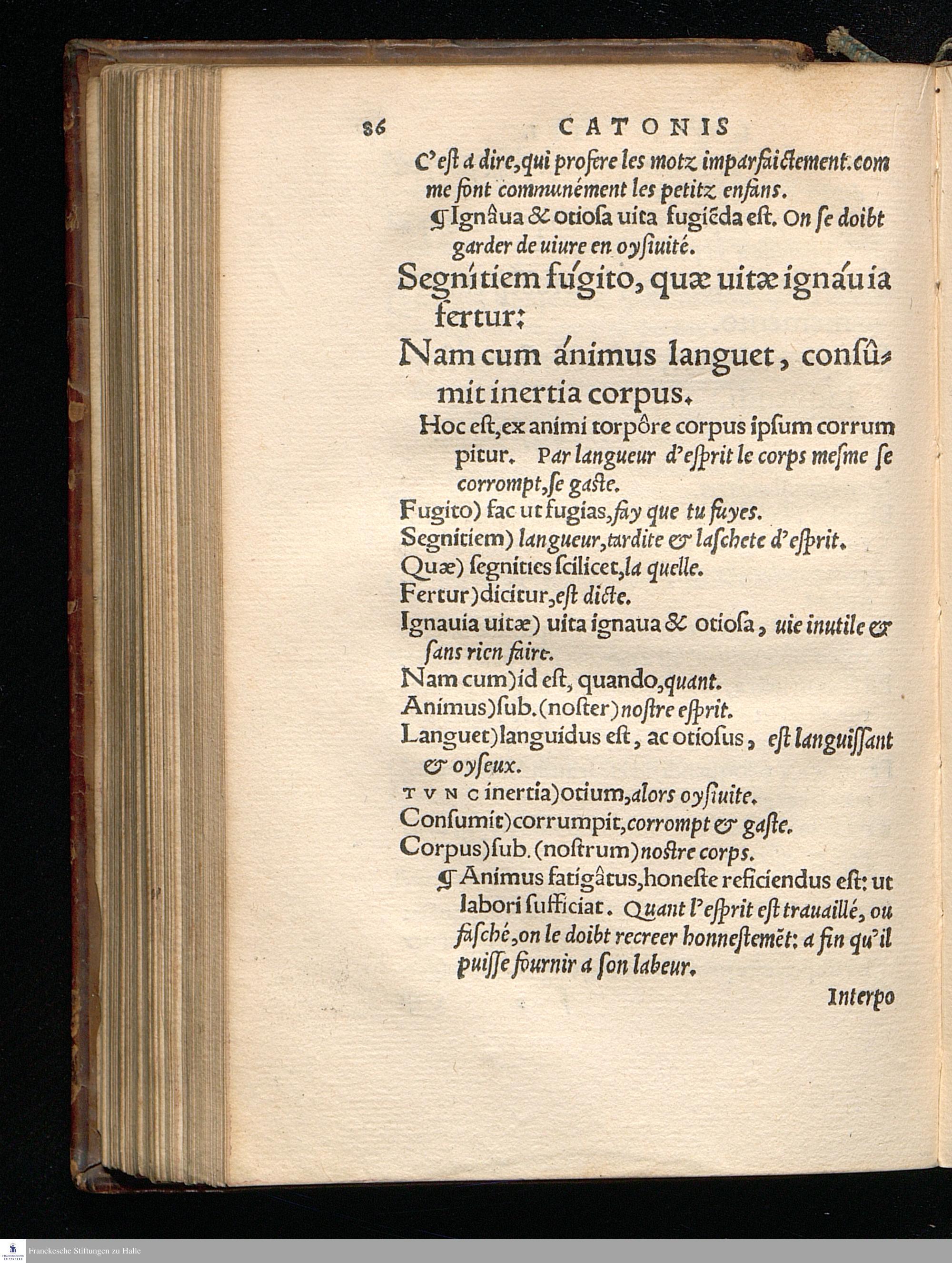 DISTICHA || DE MORIBVS, NO-||MINE CATONIS IN-||scripta, cum Latina & Gallica || interpretatione. || Epítome in síngula ferè dísticha. || Dic̄ta sapientum cum sua quoq[ue] || interpretatione. || Omnia recognita, nonnulla adiecta, || quædam immutata. ||