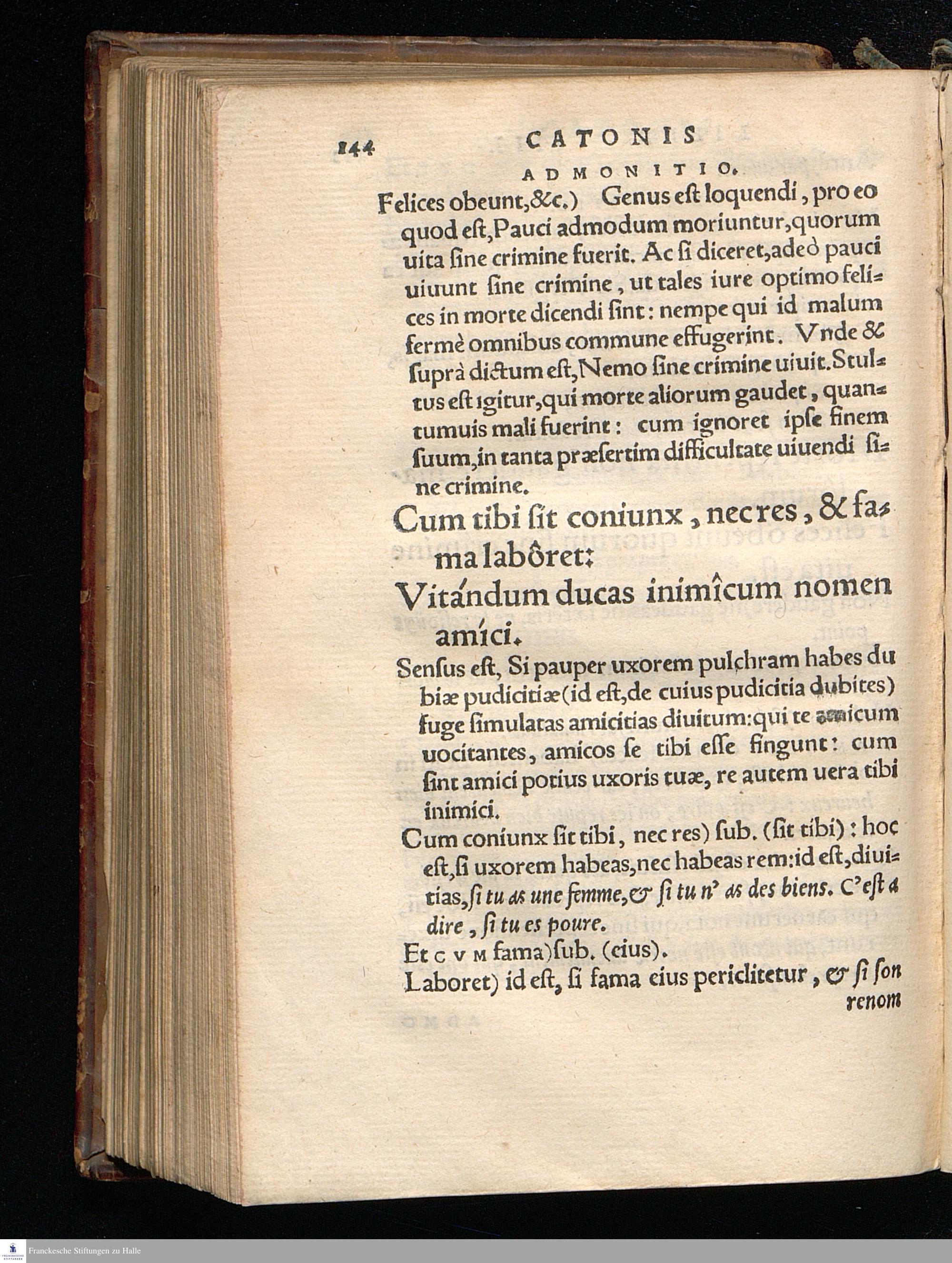 DISTICHA || DE MORIBVS, NO-||MINE CATONIS IN-||scripta, cum Latina & Gallica || interpretatione. || Epítome in síngula ferè dísticha. || Dic̄ta sapientum cum sua quoq[ue] || interpretatione. || Omnia recognita, nonnulla adiecta, || quædam immutata. ||
