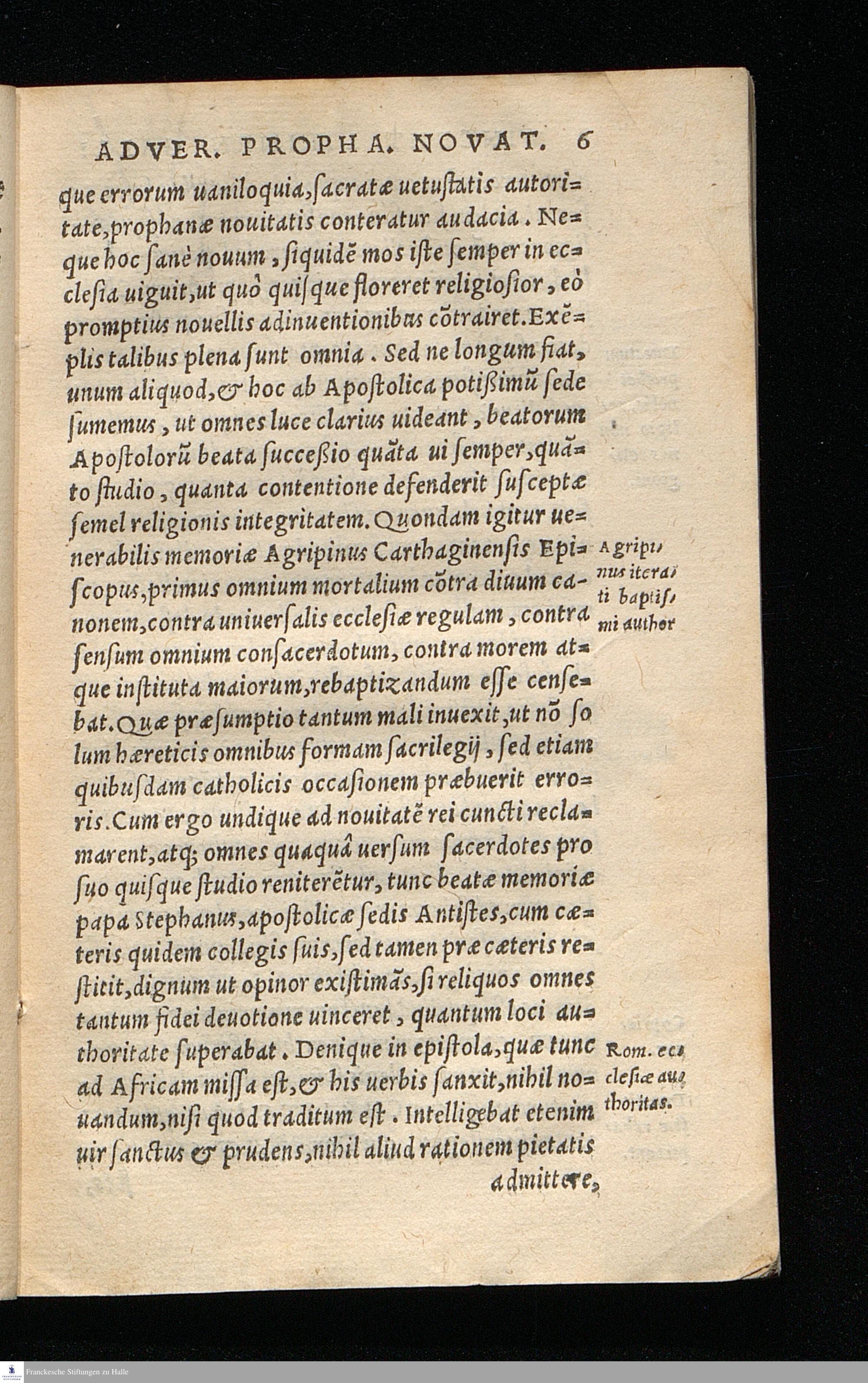 Vincentii Liri-||NENSIS GALLI, PRO || catholicæ fidei antiquitate & vniuersi-||tate, aduersus prophanas amnium hæ-||resewn nouationes Liber elegan-||tißimus, ante annos mille ab || authore æditus. || Item Q. Septimij Florentis Tertuliani de || pr[a]escript. aduersus hæreticos, Liber vnus. || Secunda æditio. ||