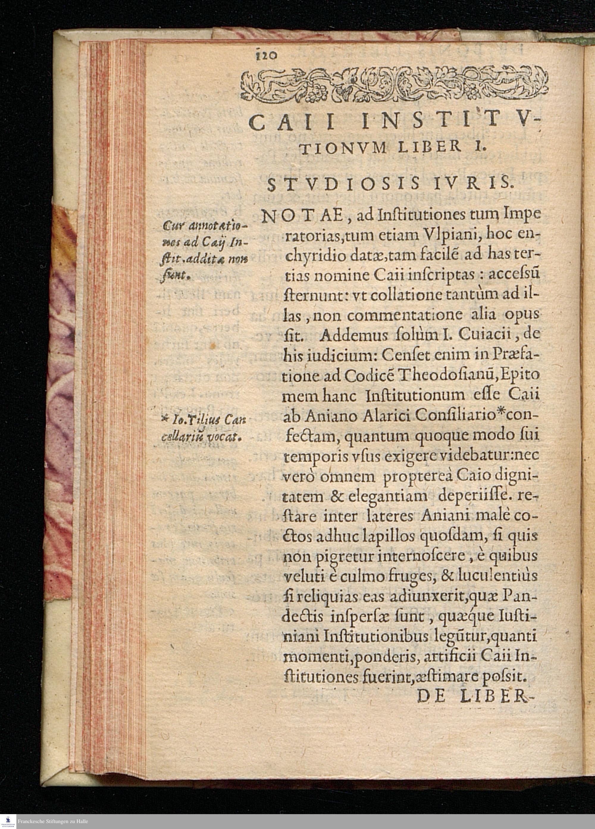 IVRIS || CIVILIS ROM. || INITIA ET PRO-||GRESSVS. || AD LEGES XII. TABV-||LARVM BREVIS || commentatio. || EX VLPIANI FRAGM. || TITVLI XXIX. SELE-||ctis notis illustrati. || CAII EX VETER. IVRIS || PRVDENTIÆ FRAGM. || INSTITVTIONVM || Libri duo. ||
