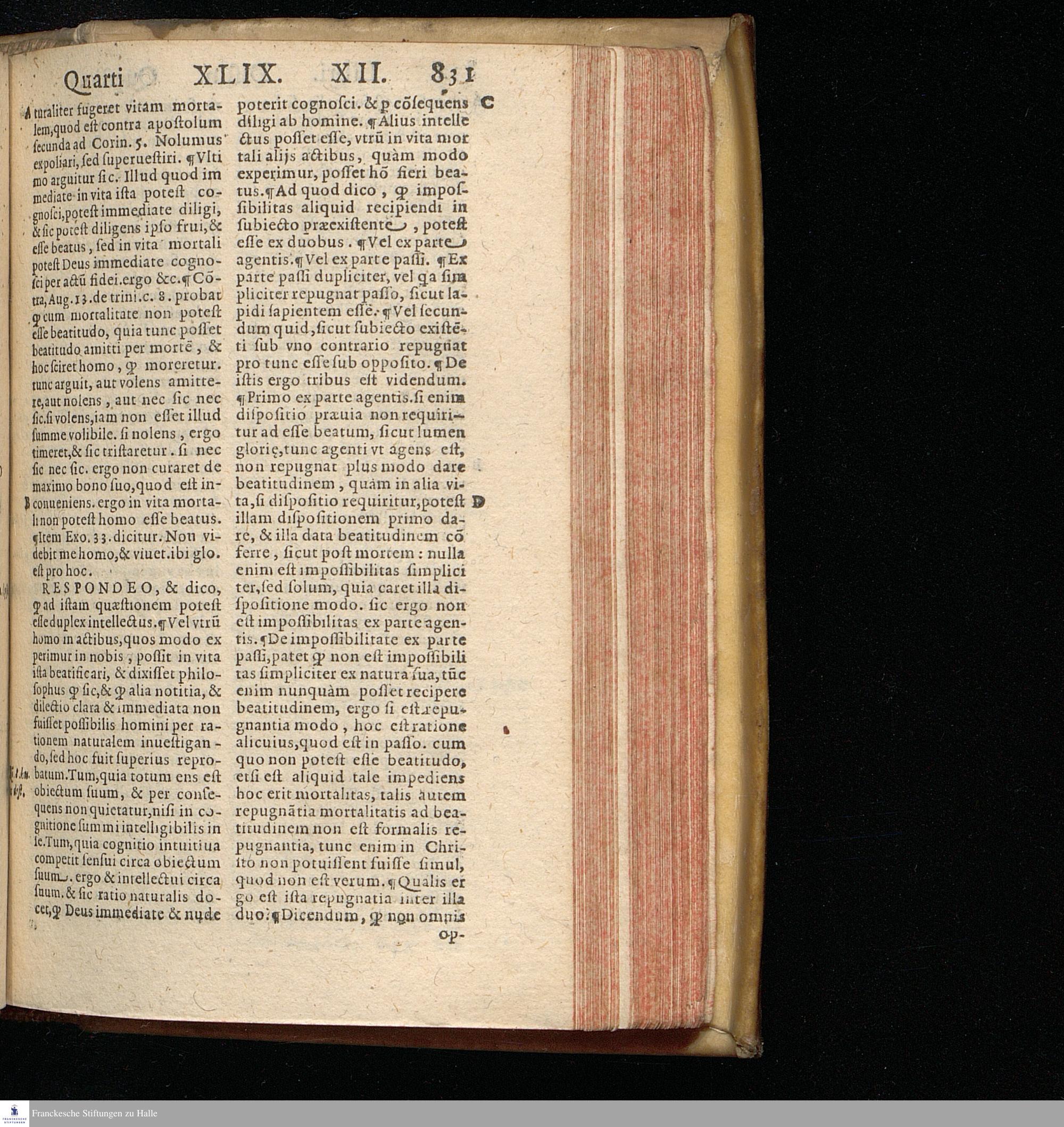 F. IOAN. DVNS || SCOTI, || ORDINIS MINORVM, || THEOLOGORVM OMNIVM || EMINENTISSIMI, || Atque Academiæ subtilium Antesignani, || Quæstiones Quarti Voluminis scripti Oxoniensis || Super Sententias, || A R. P. SALVATORE BARTOLVCIO || Assisiate, Conuentuali Franciscano, artium, ac sacræ Theo-||logiæ Doctore, doctrinæq[ue] Scoticæ Illustratore, fidelissime reco-||gnitæ, collationeq[ue] multorum codicum emendatiores, castiga-||tioresq[ue] nunc redditæ, Nec non variarum lectionum, atque || animaduersionum dote locupletatæ, ornatæ, & illustratæ. ||