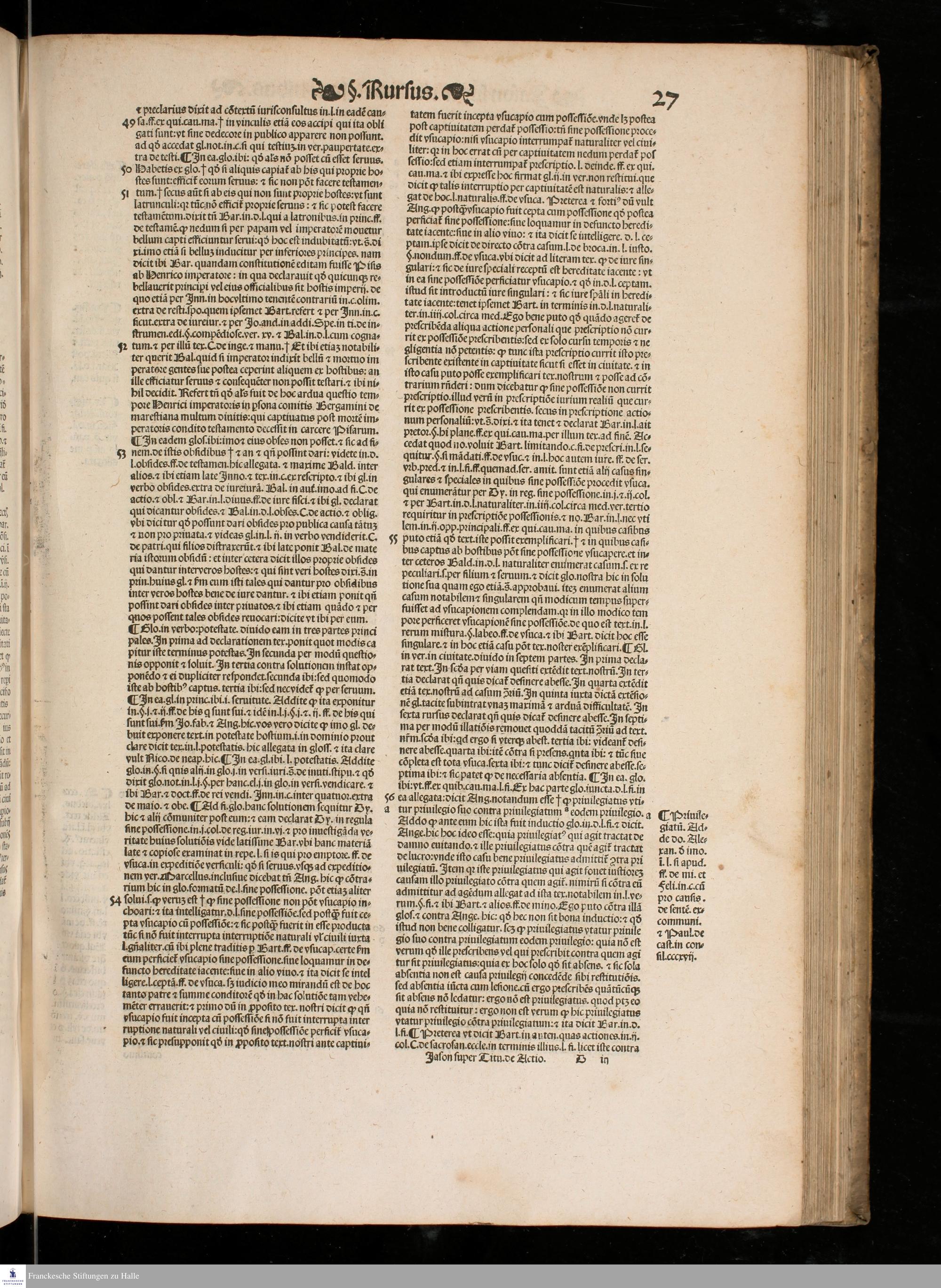 IASON DE ACTIO. || LECTVRA PRECLA-||RISSIMA DO. IASONIS MAY. VIRI || V. I. Doctissimi, super nodoso titulo de Actionibus in Institu=||tionibus Iustinianeis diligenter emendata, pristino[que] nitori || restituta, cum luculentissimis Additionibus non solum || ipsius autoris, uerumetiam celeberrimi uiri Benedi=||cti de Vadis Forosempronie[n]sis, ac etia[m] cum sum=||marijs. D. Baltha. Seuerini nuper adiectis, || Locantur insuper in calce libri huius Termini Actionu[m] omniu[m], cum Ar=||bore elega[n]tissima, luculentissi=||ma[que] eiusdem declaratione, || per utrius[que] iuris docto=||rem eximium Ioan=||nem Crispu[m] de || Montibus, || ciuem || Aquilanum ad || communem iuri stu=||dentium utilitatem collecti.
