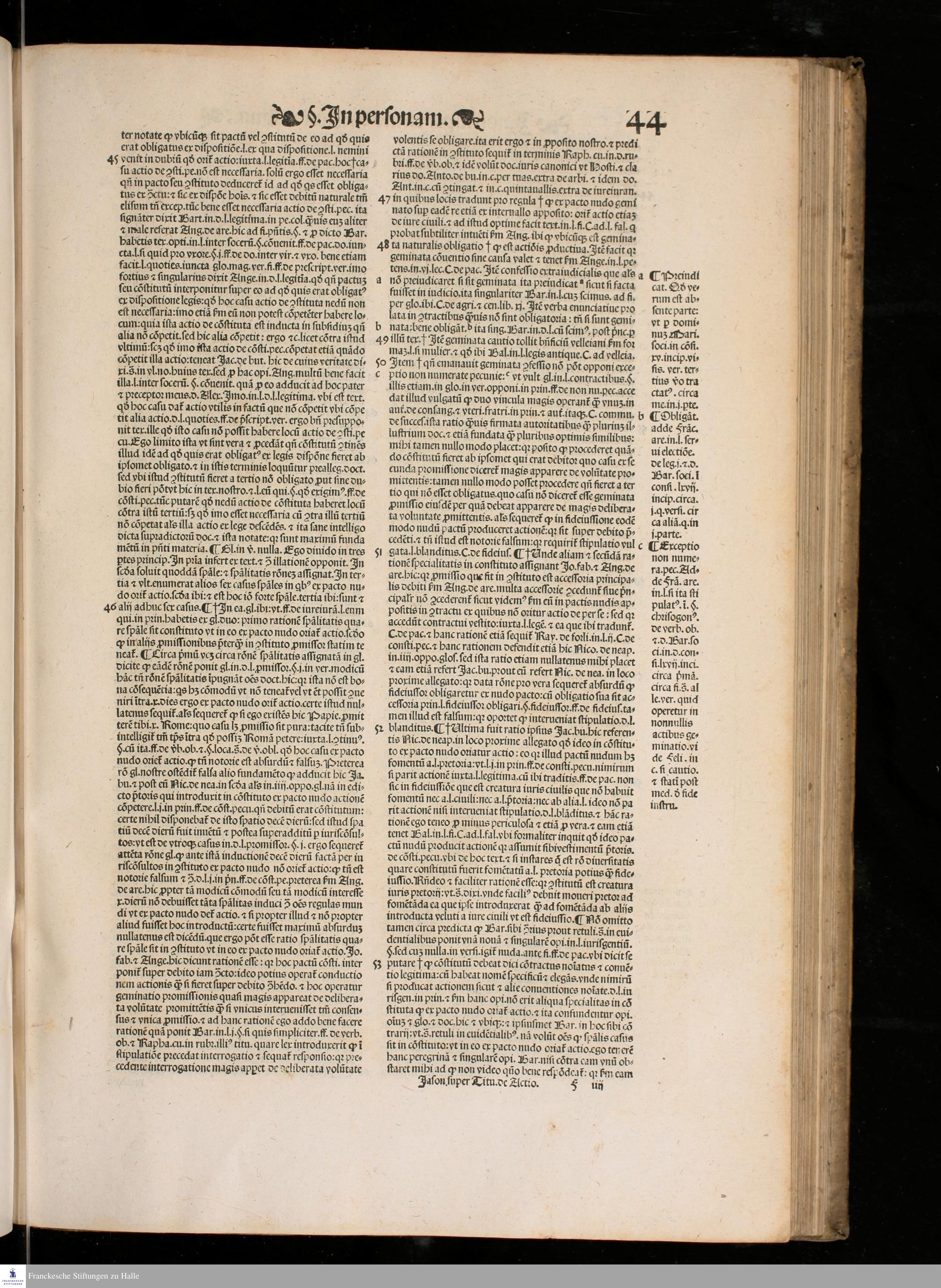 IASON DE ACTIO. || LECTVRA PRECLA-||RISSIMA DO. IASONIS MAY. VIRI || V. I. Doctissimi, super nodoso titulo de Actionibus in Institu=||tionibus Iustinianeis diligenter emendata, pristino[que] nitori || restituta, cum luculentissimis Additionibus non solum || ipsius autoris, uerumetiam celeberrimi uiri Benedi=||cti de Vadis Forosempronie[n]sis, ac etia[m] cum sum=||marijs. D. Baltha. Seuerini nuper adiectis, || Locantur insuper in calce libri huius Termini Actionu[m] omniu[m], cum Ar=||bore elega[n]tissima, luculentissi=||ma[que] eiusdem declaratione, || per utrius[que] iuris docto=||rem eximium Ioan=||nem Crispu[m] de || Montibus, || ciuem || Aquilanum ad || communem iuri stu=||dentium utilitatem collecti.