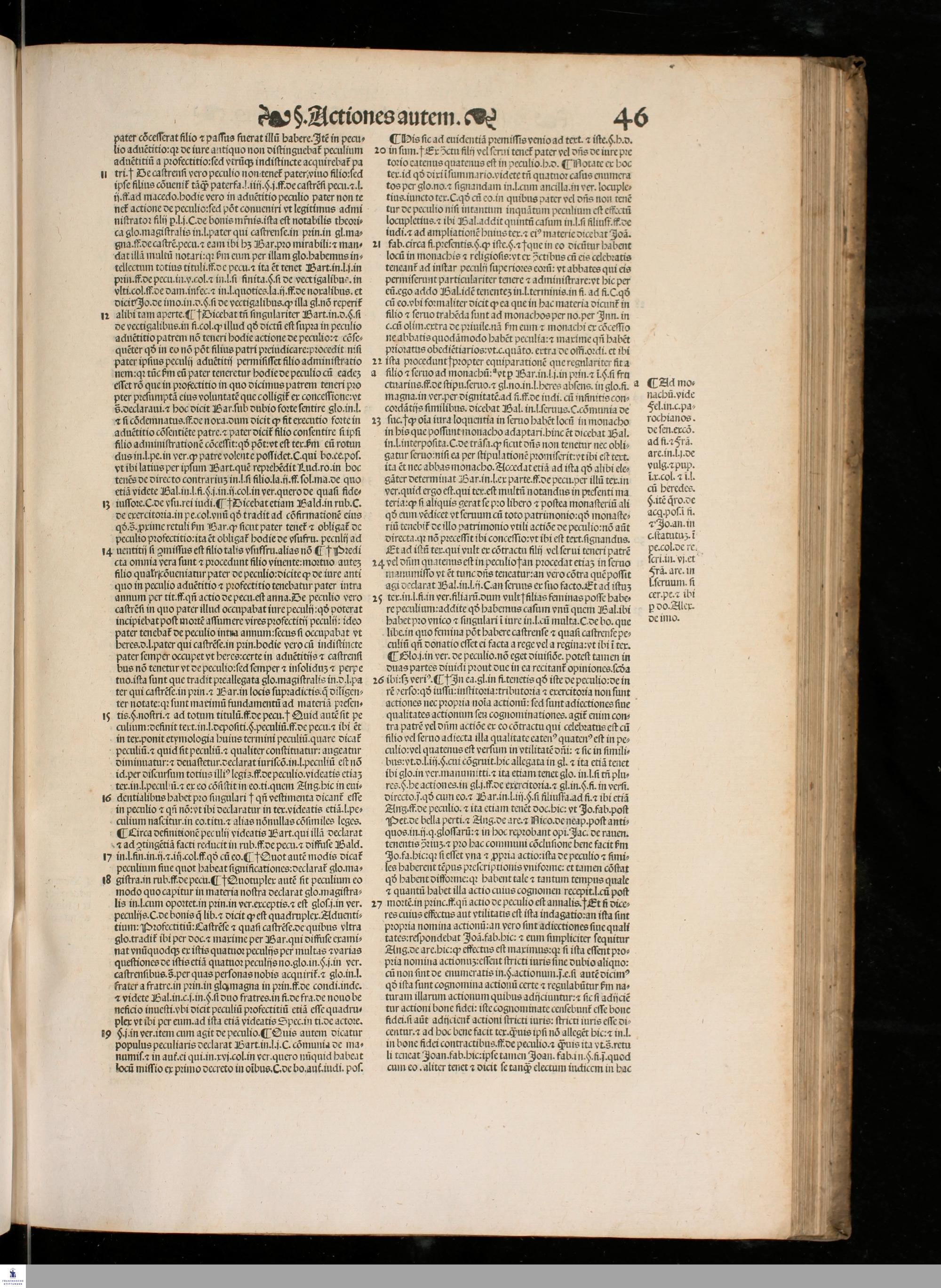 IASON DE ACTIO. || LECTVRA PRECLA-||RISSIMA DO. IASONIS MAY. VIRI || V. I. Doctissimi, super nodoso titulo de Actionibus in Institu=||tionibus Iustinianeis diligenter emendata, pristino[que] nitori || restituta, cum luculentissimis Additionibus non solum || ipsius autoris, uerumetiam celeberrimi uiri Benedi=||cti de Vadis Forosempronie[n]sis, ac etia[m] cum sum=||marijs. D. Baltha. Seuerini nuper adiectis, || Locantur insuper in calce libri huius Termini Actionu[m] omniu[m], cum Ar=||bore elega[n]tissima, luculentissi=||ma[que] eiusdem declaratione, || per utrius[que] iuris docto=||rem eximium Ioan=||nem Crispu[m] de || Montibus, || ciuem || Aquilanum ad || communem iuri stu=||dentium utilitatem collecti.