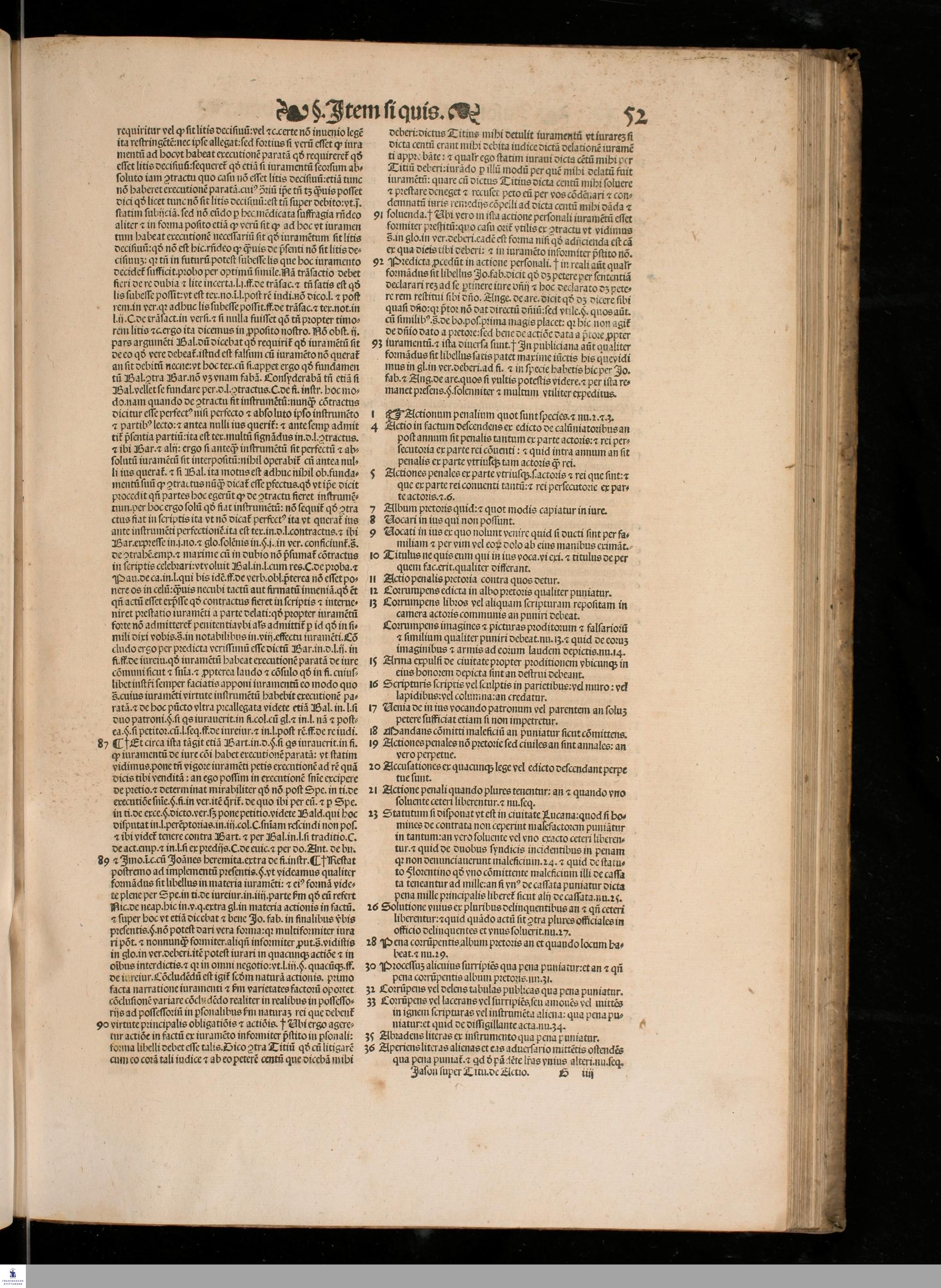 IASON DE ACTIO. || LECTVRA PRECLA-||RISSIMA DO. IASONIS MAY. VIRI || V. I. Doctissimi, super nodoso titulo de Actionibus in Institu=||tionibus Iustinianeis diligenter emendata, pristino[que] nitori || restituta, cum luculentissimis Additionibus non solum || ipsius autoris, uerumetiam celeberrimi uiri Benedi=||cti de Vadis Forosempronie[n]sis, ac etia[m] cum sum=||marijs. D. Baltha. Seuerini nuper adiectis, || Locantur insuper in calce libri huius Termini Actionu[m] omniu[m], cum Ar=||bore elega[n]tissima, luculentissi=||ma[que] eiusdem declaratione, || per utrius[que] iuris docto=||rem eximium Ioan=||nem Crispu[m] de || Montibus, || ciuem || Aquilanum ad || communem iuri stu=||dentium utilitatem collecti.