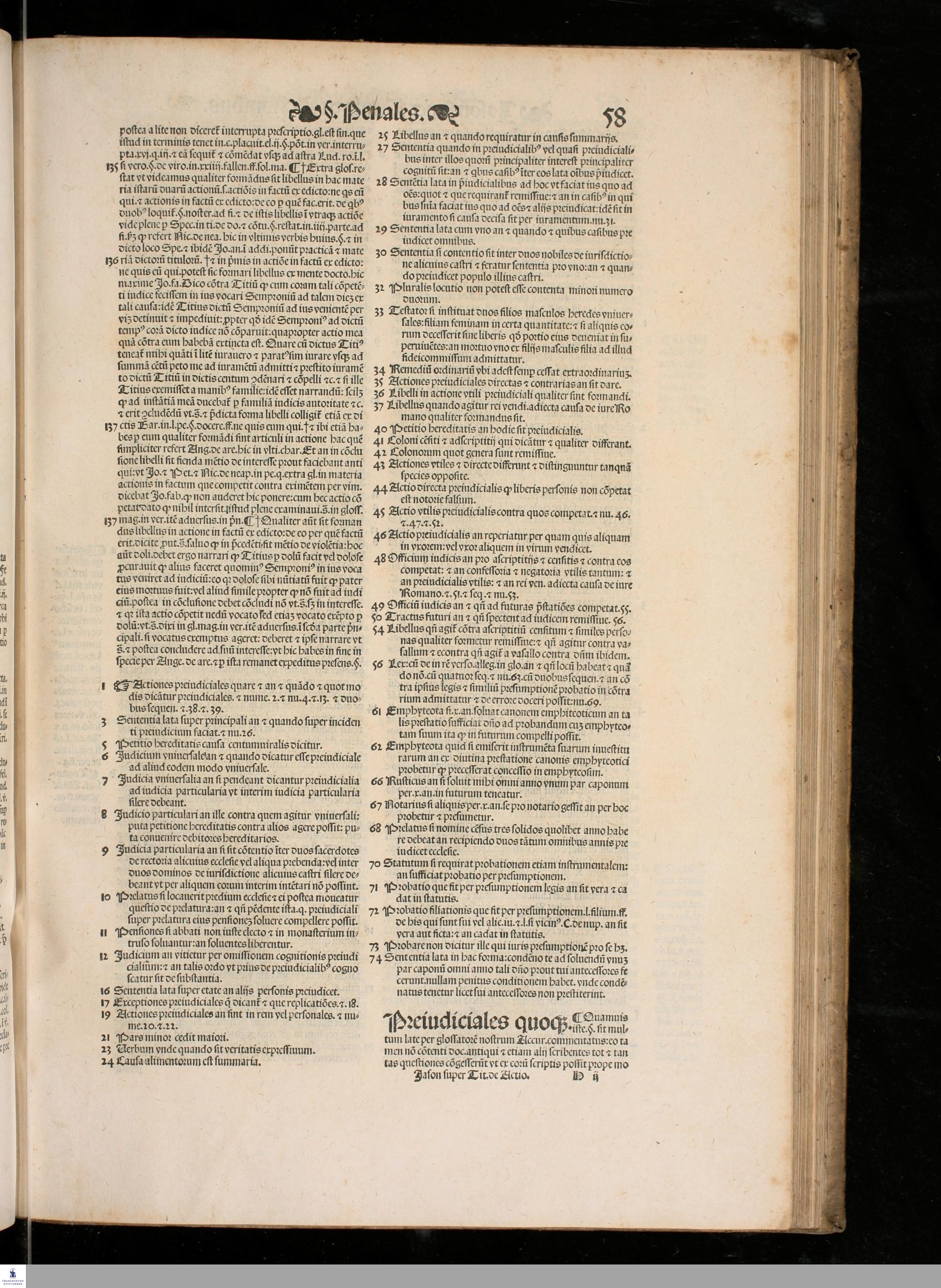 IASON DE ACTIO. || LECTVRA PRECLA-||RISSIMA DO. IASONIS MAY. VIRI || V. I. Doctissimi, super nodoso titulo de Actionibus in Institu=||tionibus Iustinianeis diligenter emendata, pristino[que] nitori || restituta, cum luculentissimis Additionibus non solum || ipsius autoris, uerumetiam celeberrimi uiri Benedi=||cti de Vadis Forosempronie[n]sis, ac etia[m] cum sum=||marijs. D. Baltha. Seuerini nuper adiectis, || Locantur insuper in calce libri huius Termini Actionu[m] omniu[m], cum Ar=||bore elega[n]tissima, luculentissi=||ma[que] eiusdem declaratione, || per utrius[que] iuris docto=||rem eximium Ioan=||nem Crispu[m] de || Montibus, || ciuem || Aquilanum ad || communem iuri stu=||dentium utilitatem collecti.