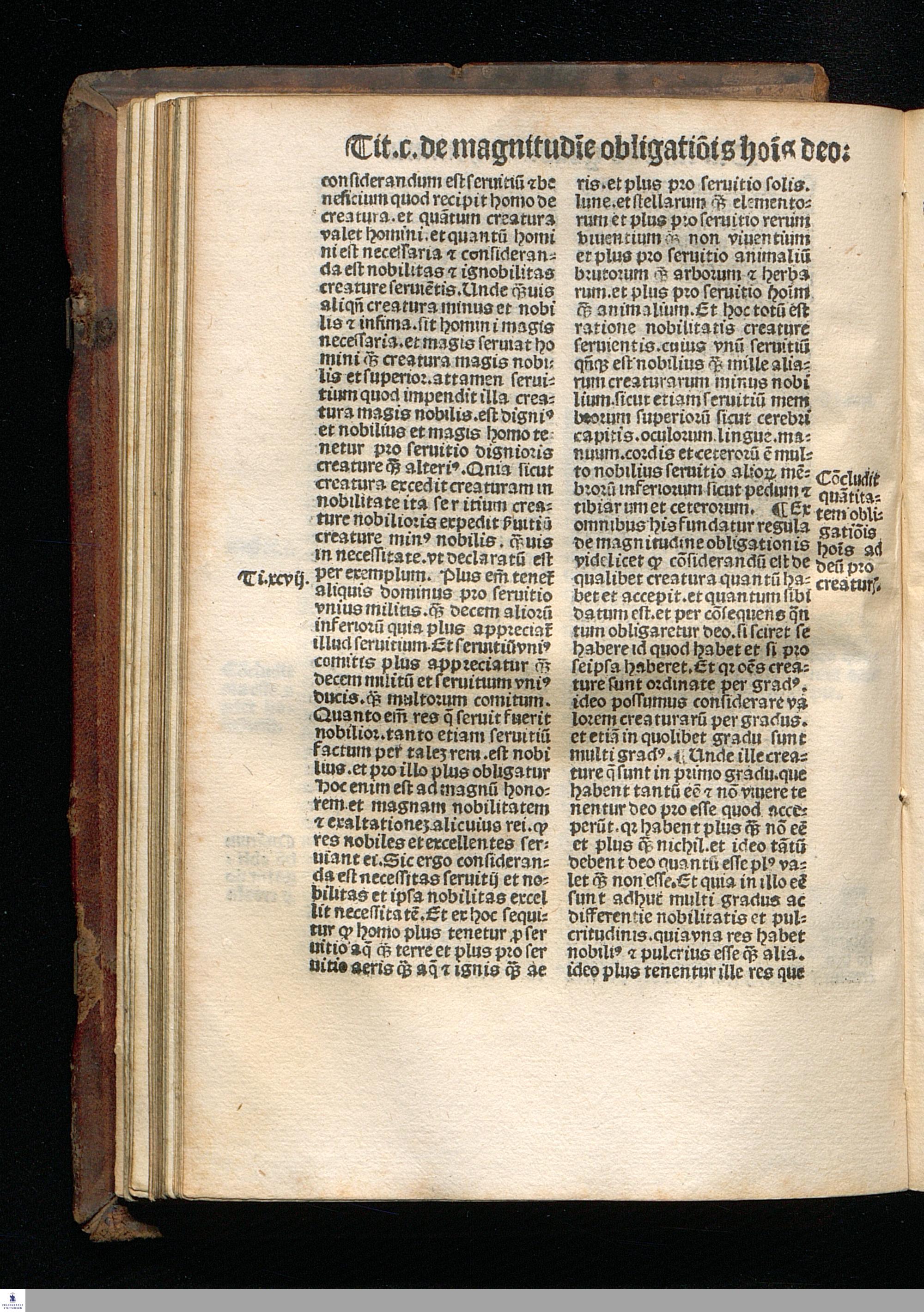 Theologia naturalis siue liber crea||turaru[m] specialiter de ho[m]i[n]e [et] de natu||ra eius inqua[n]tu[m] ho[mo]. et de his q[uae] sunt || ei necessaria ad cognoscendu[m] se ip[su]m || et deu[m]. et om[n]e debitu[m] ad quod homo || tenet[ur] [et] obligatur ta[m] deo q[uam] p[ro]ximo.