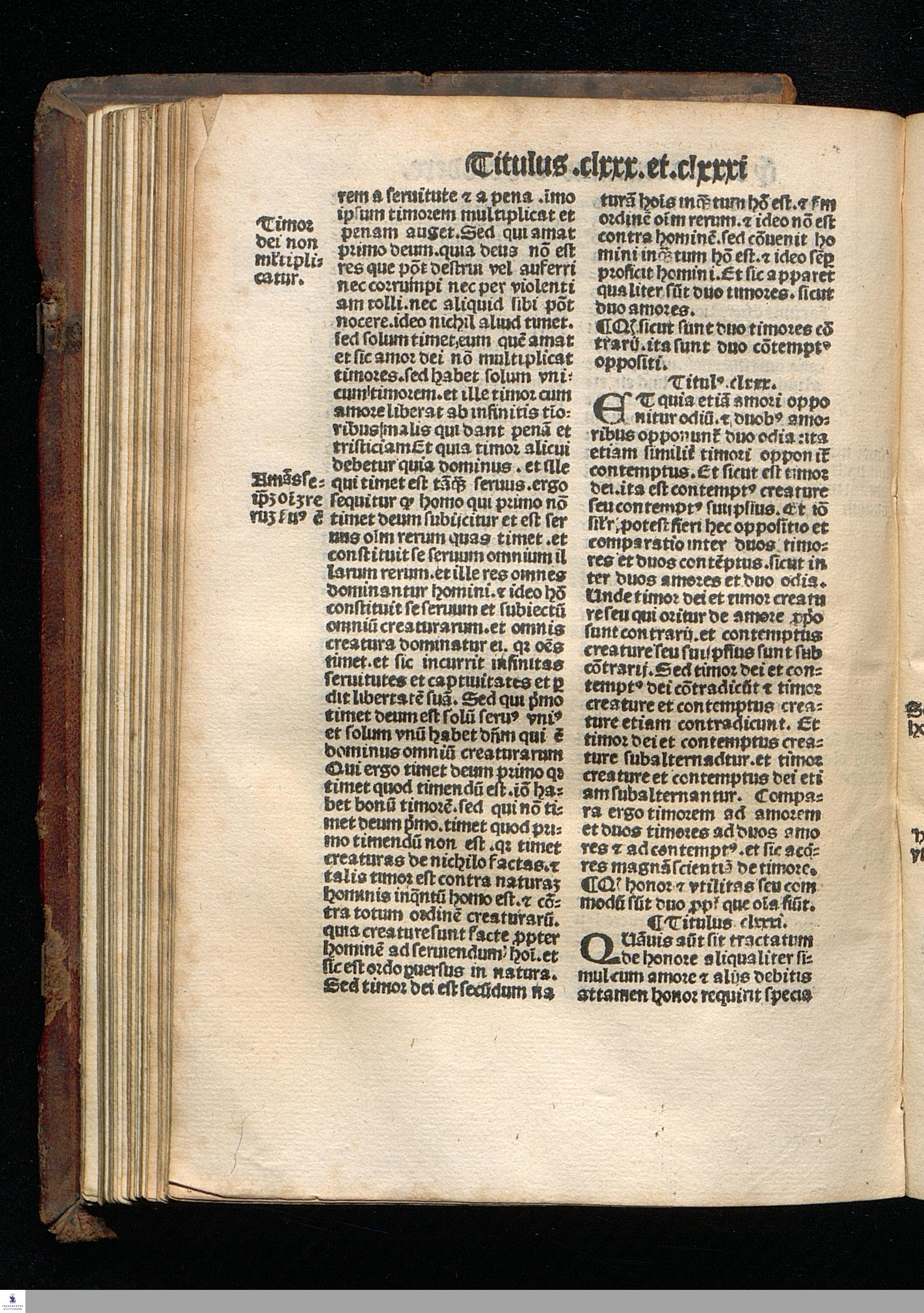 Theologia naturalis siue liber crea||turaru[m] specialiter de ho[m]i[n]e [et] de natu||ra eius inqua[n]tu[m] ho[mo]. et de his q[uae] sunt || ei necessaria ad cognoscendu[m] se ip[su]m || et deu[m]. et om[n]e debitu[m] ad quod homo || tenet[ur] [et] obligatur ta[m] deo q[uam] p[ro]ximo.