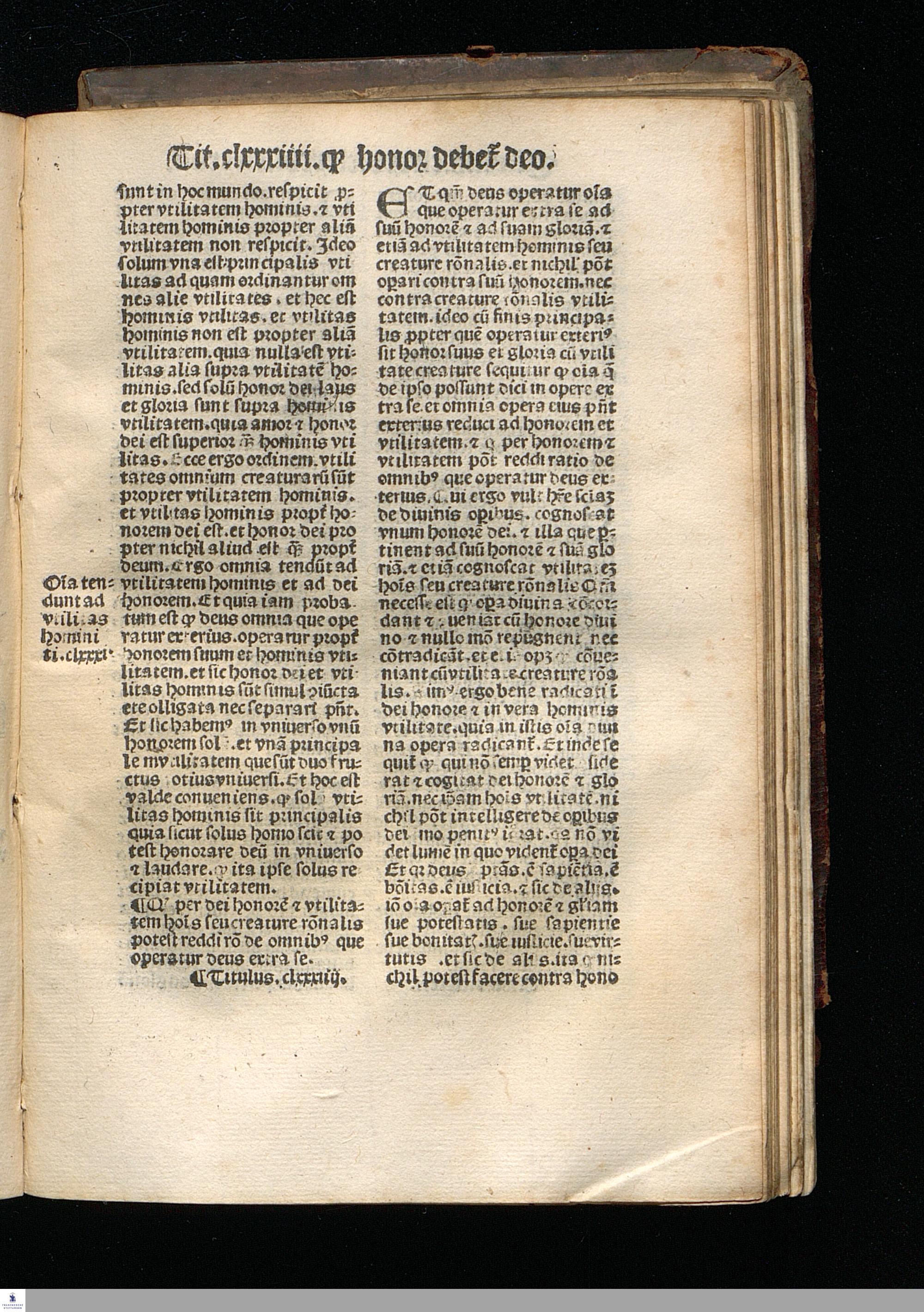 Theologia naturalis siue liber crea||turaru[m] specialiter de ho[m]i[n]e [et] de natu||ra eius inqua[n]tu[m] ho[mo]. et de his q[uae] sunt || ei necessaria ad cognoscendu[m] se ip[su]m || et deu[m]. et om[n]e debitu[m] ad quod homo || tenet[ur] [et] obligatur ta[m] deo q[uam] p[ro]ximo.