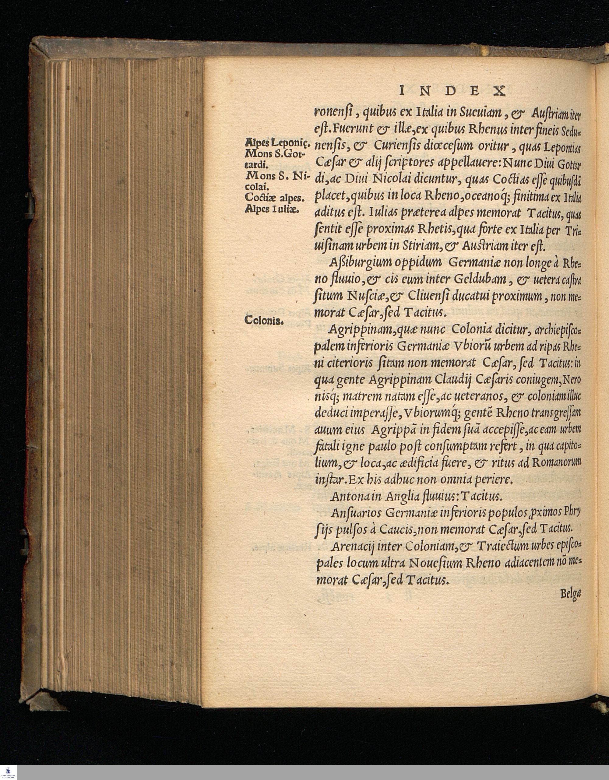 PROVINCIARVM VRBIVM, POPVLORVM, Montium, Fluminum, ac uirorum illustrium propia nomina, alia praeterea multa in Commentarijs Caesaris notatu digna hoc Indice com monstrantur.