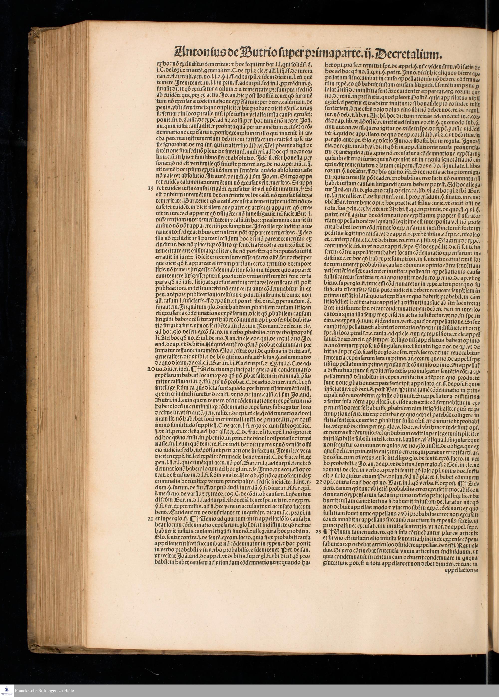 P. 2,1 (1532) ... || SVPER PRIMA PARTE SECVNDI || DECRETALIVM. || CLARISSIMI IVRIS || VTRIVSQVE DOCTORIS DOMINI || Antonij de Butrio super Prima parte || secundi Decretalium accuratissime || excusa, ... || ... ||
