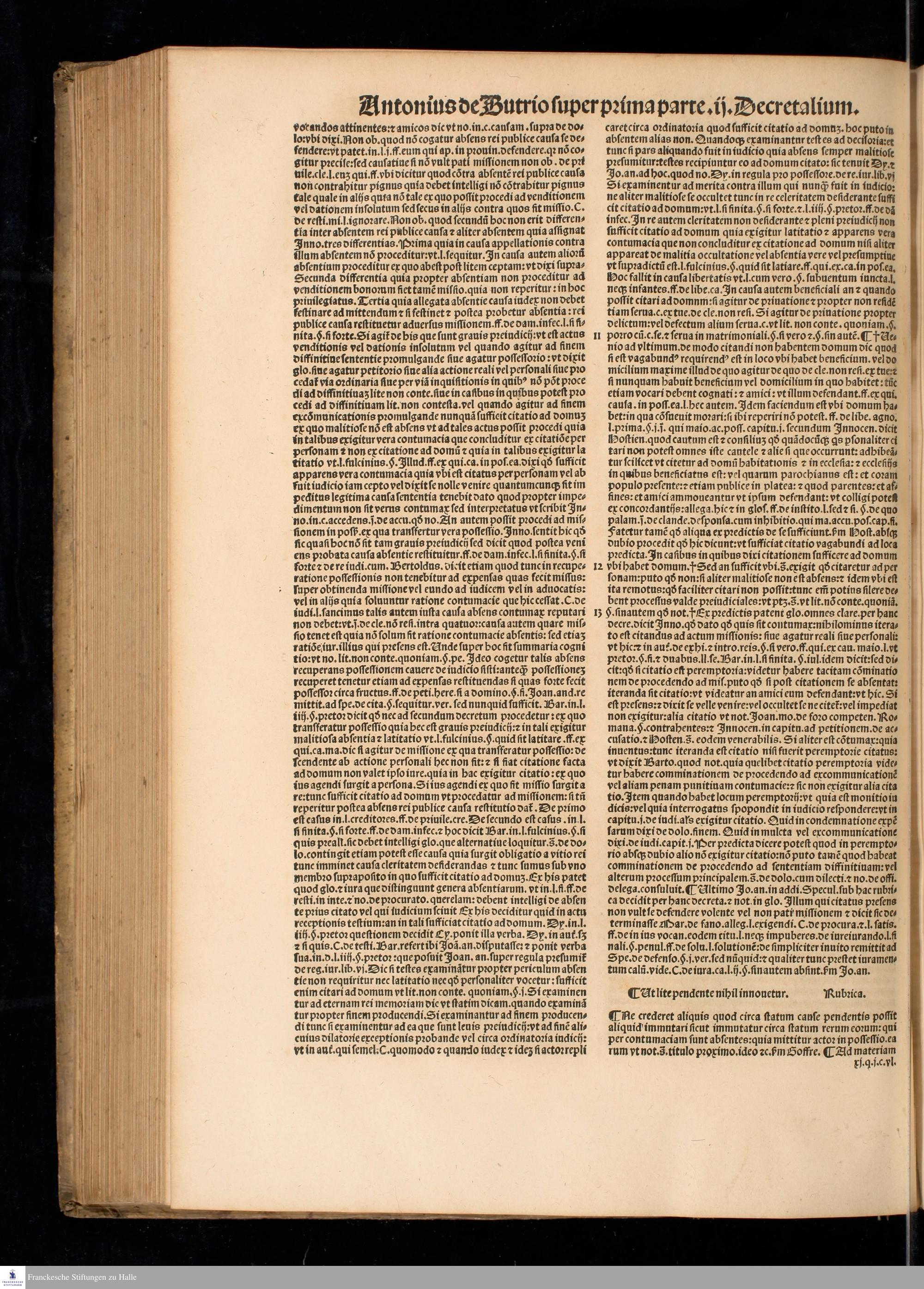 Ut lite pendente nihil innonetur. Rubrica.