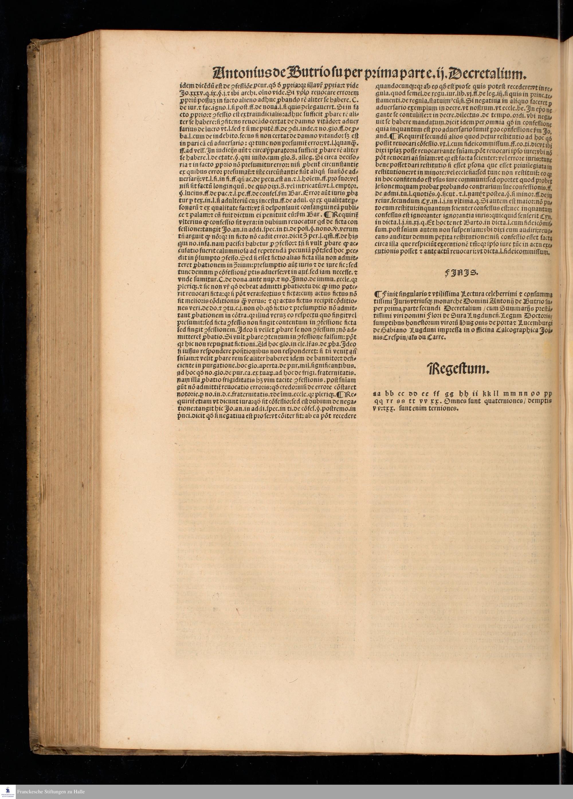 P. 2,1 (1532) ... || SVPER PRIMA PARTE SECVNDI || DECRETALIVM. || CLARISSIMI IVRIS || VTRIVSQVE DOCTORIS DOMINI || Antonij de Butrio super Prima parte || secundi Decretalium accuratissime || excusa, ... || ... ||