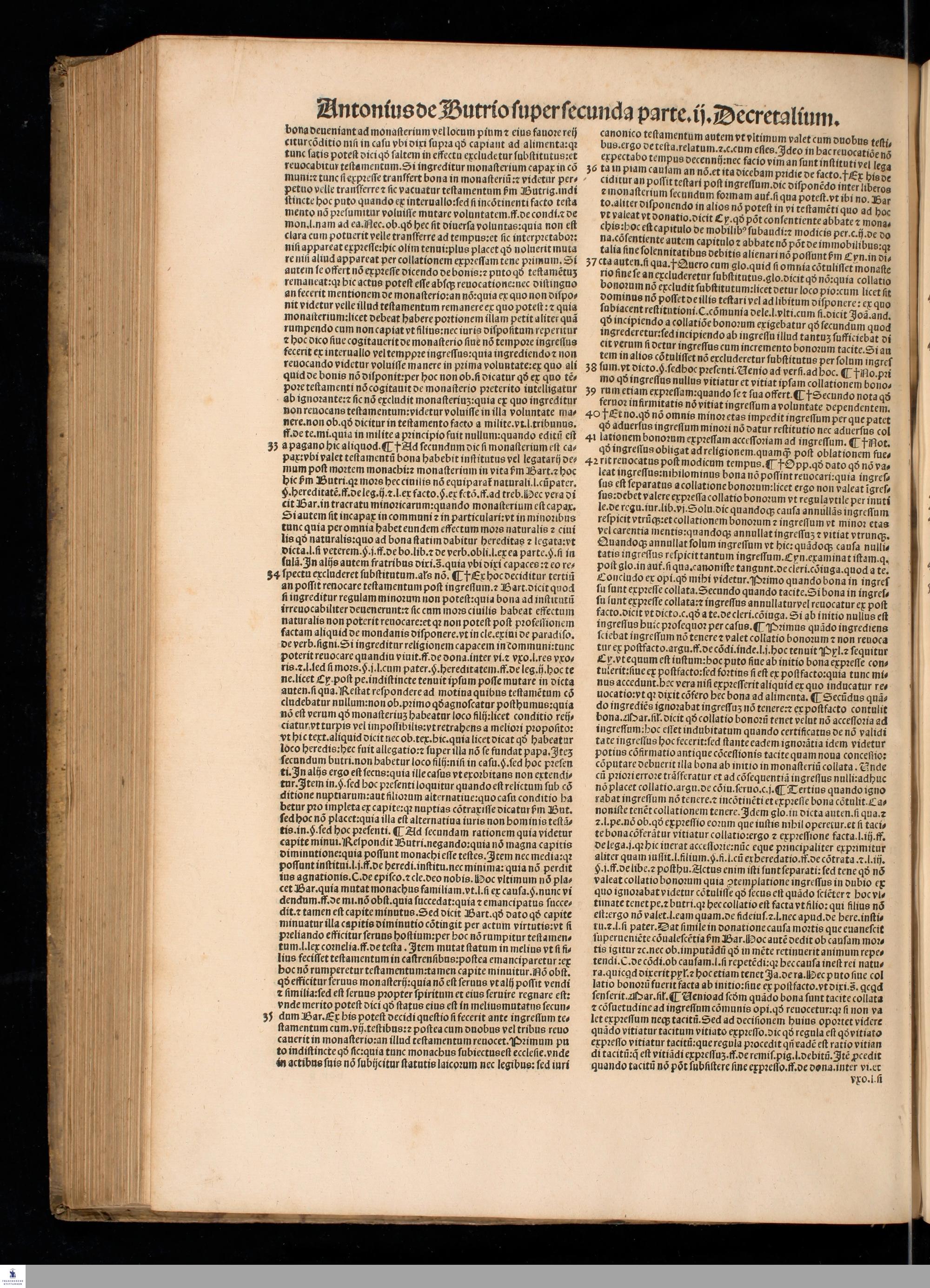 P. 2,2 (1532) ... || SVPER SECVNDA PARTE SECVNDI || DECRETALIVM. || CLARISSIMI IVRIS || VTRIVSQVE DOCTORIS DOMINI || Antonij de Butrio perutilis Lectura super secunda || parte Secundi Decretalium accuratissime excusa, || ... ||