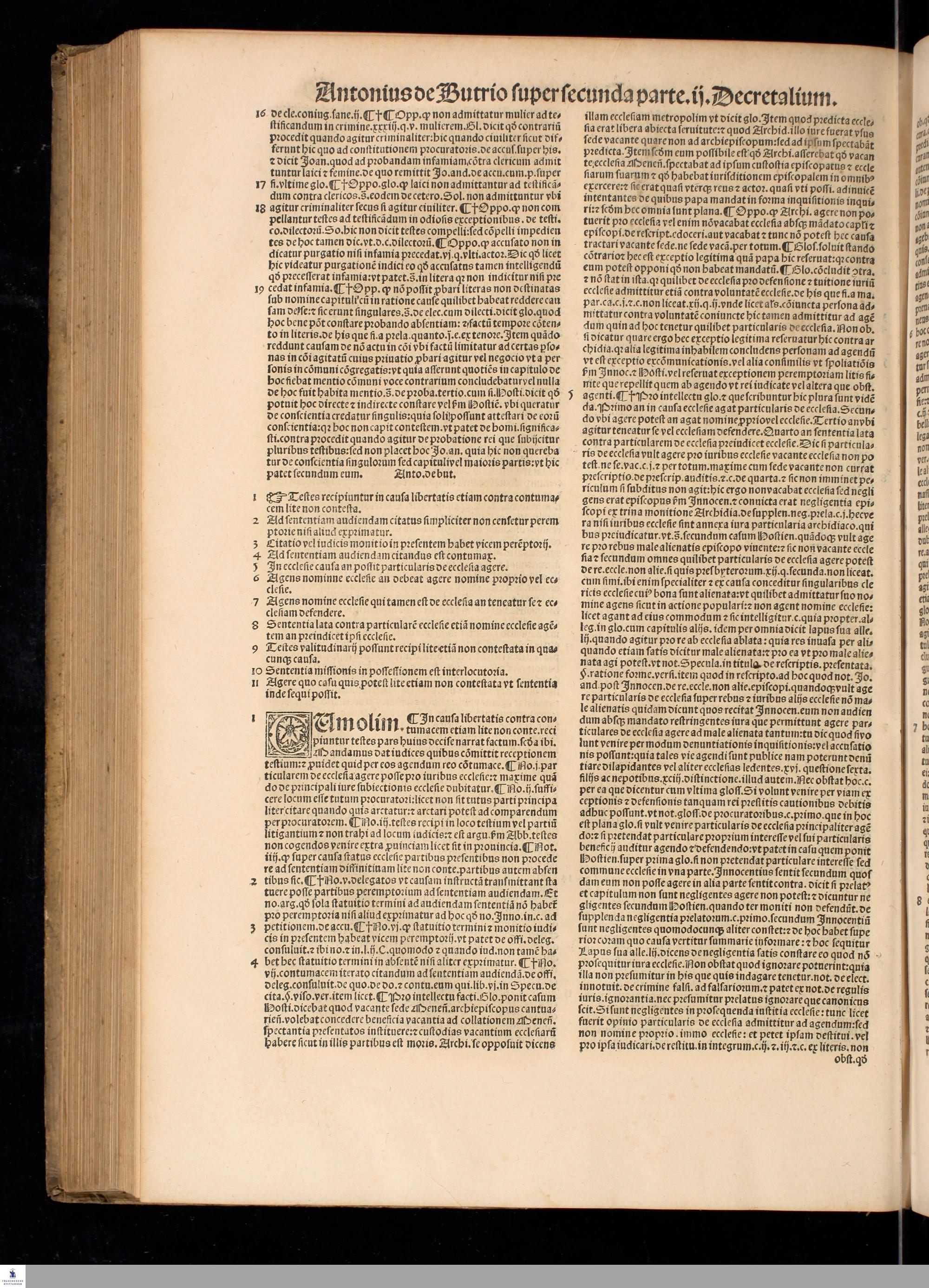 P. 2,2 (1532) ... || SVPER SECVNDA PARTE SECVNDI || DECRETALIVM. || CLARISSIMI IVRIS || VTRIVSQVE DOCTORIS DOMINI || Antonij de Butrio perutilis Lectura super secunda || parte Secundi Decretalium accuratissime excusa, || ... ||
