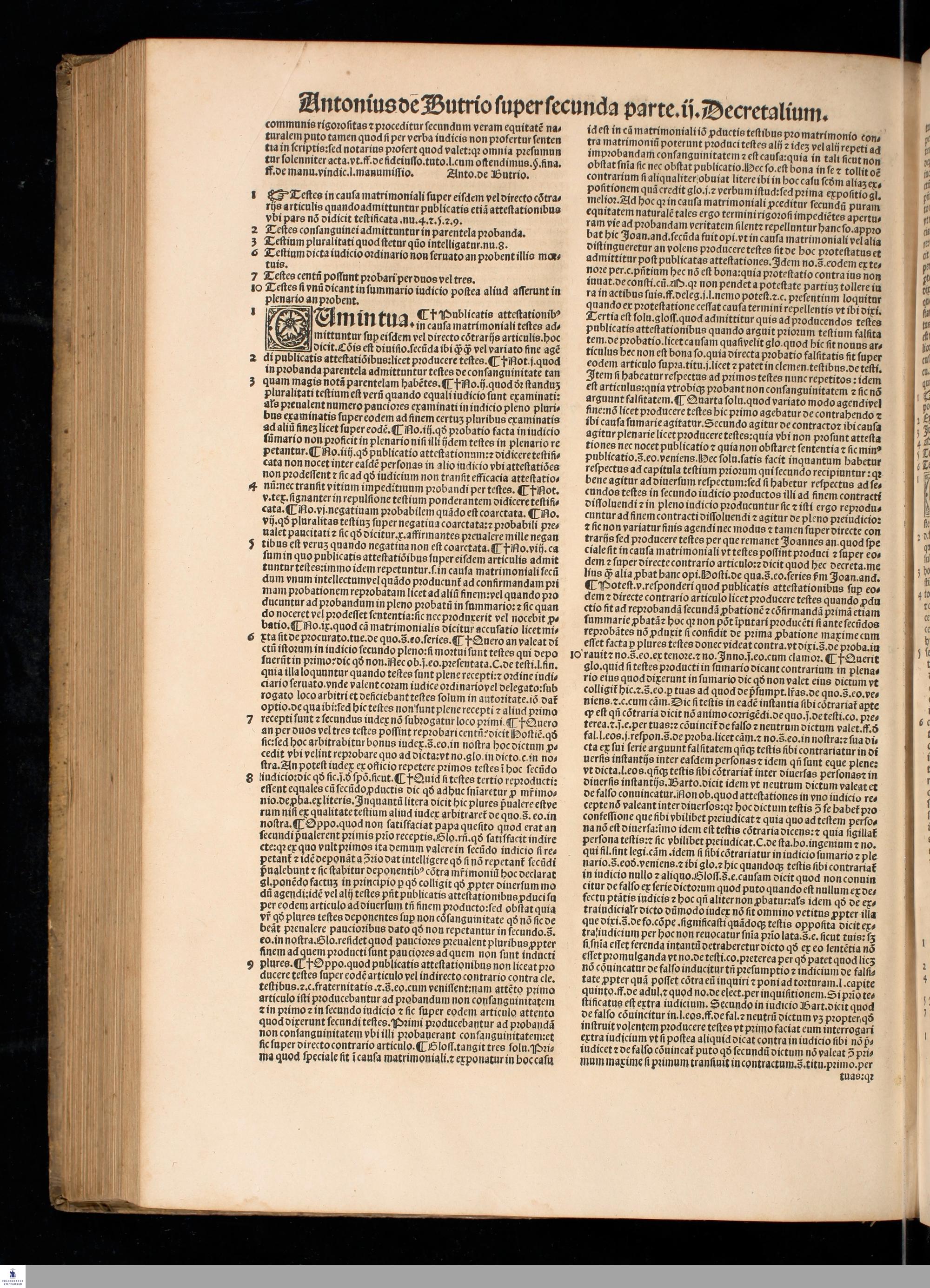 P. 2,2 (1532) ... || SVPER SECVNDA PARTE SECVNDI || DECRETALIVM. || CLARISSIMI IVRIS || VTRIVSQVE DOCTORIS DOMINI || Antonij de Butrio perutilis Lectura super secunda || parte Secundi Decretalium accuratissime excusa, || ... ||