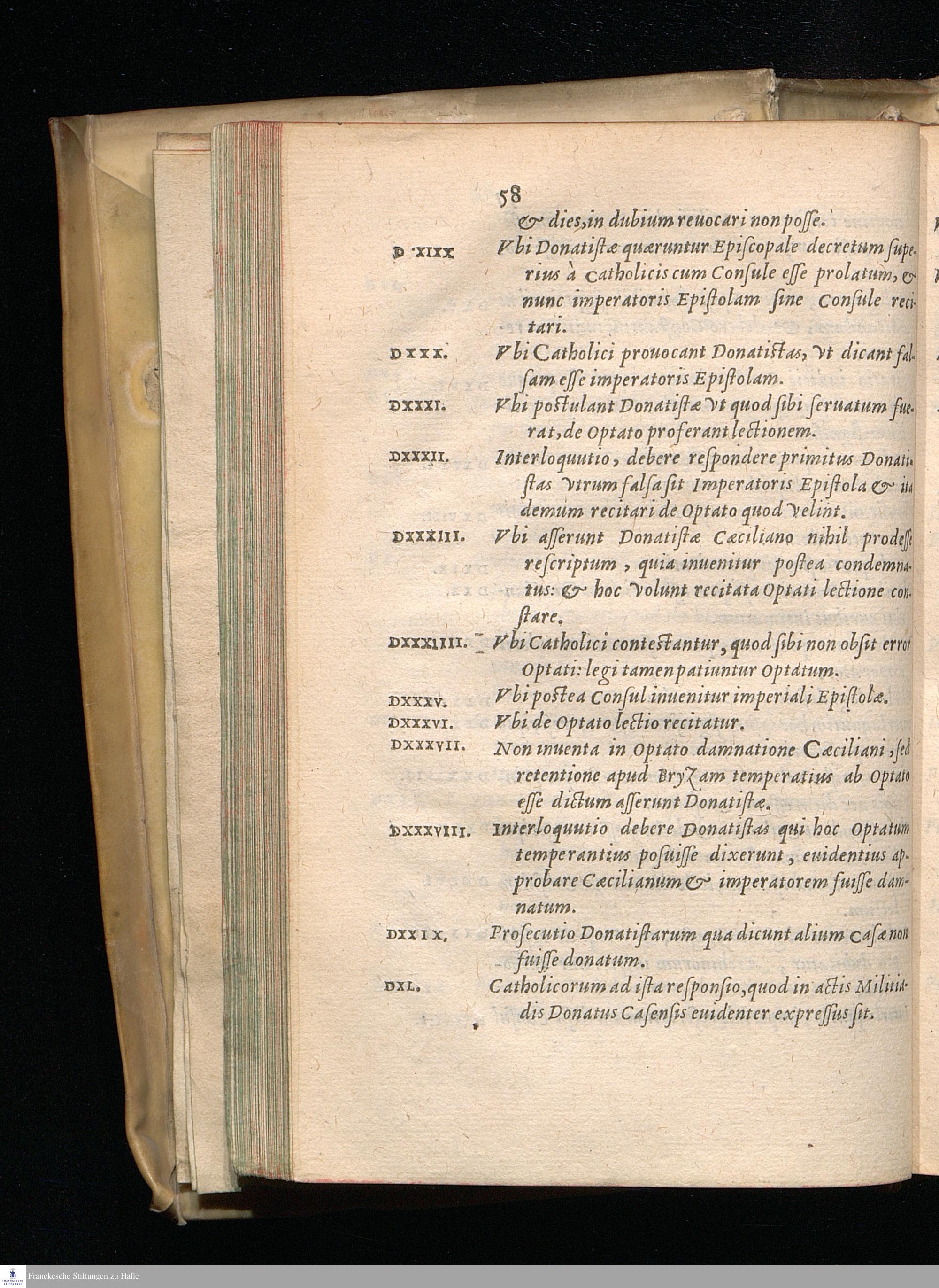 GESTA || COLLATIONIS || CHARTAGINI HABITÆ || HONORII CAESARIS IVSSV INTER || Catholicos & Donatistas coram Mar-||cellino V. C. Trib. & Not. || P. C. VARANIS V. C. || Opus non solum Theologis, sed etiam Iuris-||consultis Valde Vtile, || Papirij Massoni studio atq[ue] opera nunc primu[m] || in lucem editum. ||