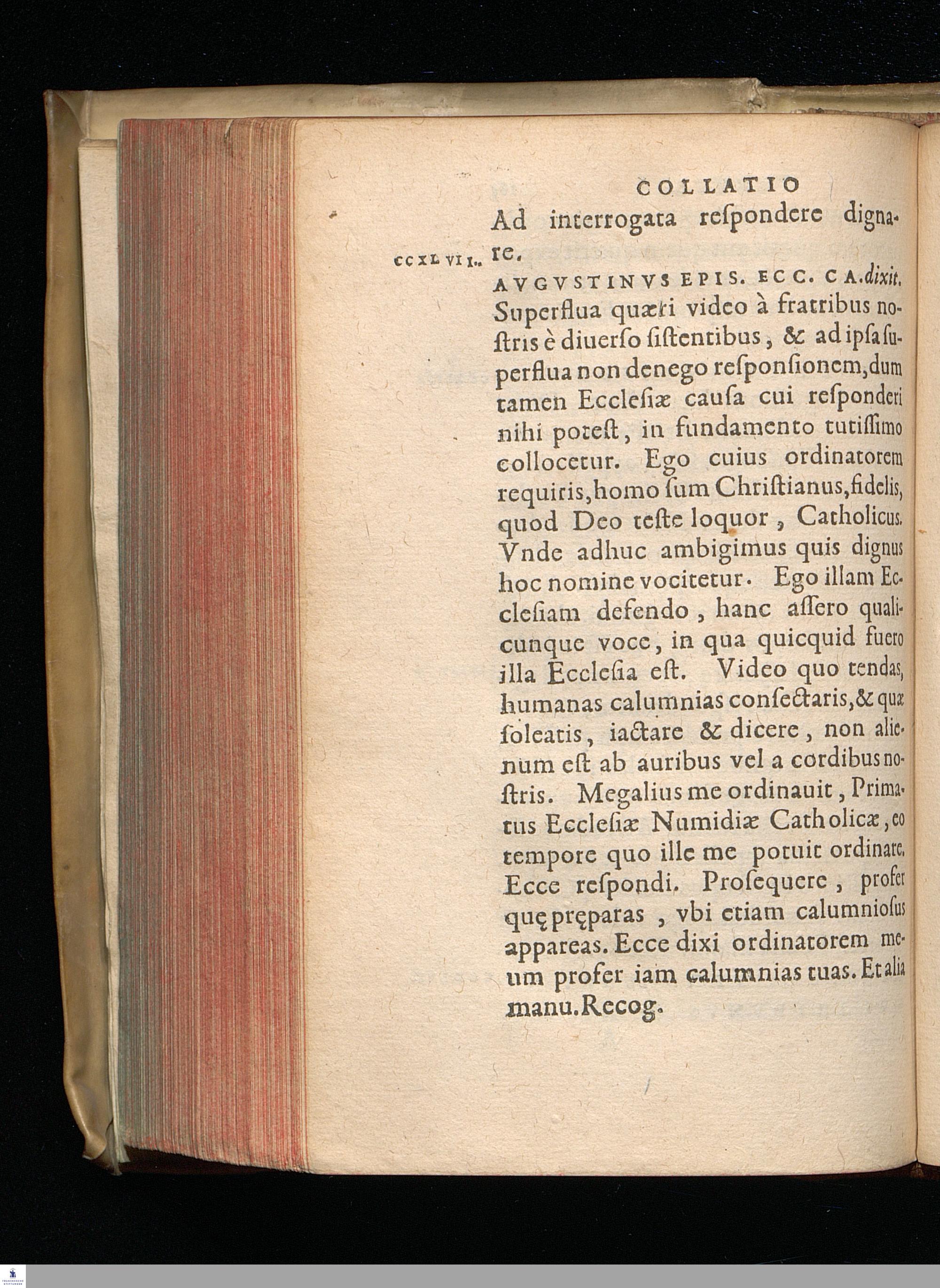 GESTA || COLLATIONIS || CHARTAGINI HABITÆ || HONORII CAESARIS IVSSV INTER || Catholicos & Donatistas coram Mar-||cellino V. C. Trib. & Not. || P. C. VARANIS V. C. || Opus non solum Theologis, sed etiam Iuris-||consultis Valde Vtile, || Papirij Massoni studio atq[ue] opera nunc primu[m] || in lucem editum. ||