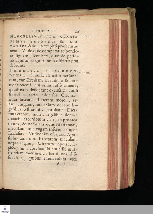 GESTA || COLLATIONIS || CHARTAGINI HABITÆ || HONORII CAESARIS IVSSV INTER || Catholicos & Donatistas coram Mar-||cellino V. C. Trib. & Not. || P. C. VARANIS V. C. || Opus non solum Theologis, sed etiam Iuris-||consultis Valde Vtile, || Papirij Massoni studio atq[ue] opera nunc primu[m] || in lucem editum. ||
