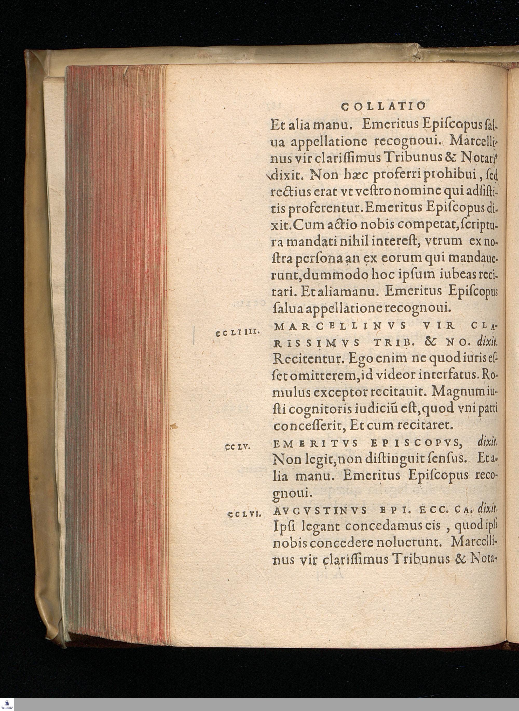 GESTA || COLLATIONIS || CHARTAGINI HABITÆ || HONORII CAESARIS IVSSV INTER || Catholicos & Donatistas coram Mar-||cellino V. C. Trib. & Not. || P. C. VARANIS V. C. || Opus non solum Theologis, sed etiam Iuris-||consultis Valde Vtile, || Papirij Massoni studio atq[ue] opera nunc primu[m] || in lucem editum. ||