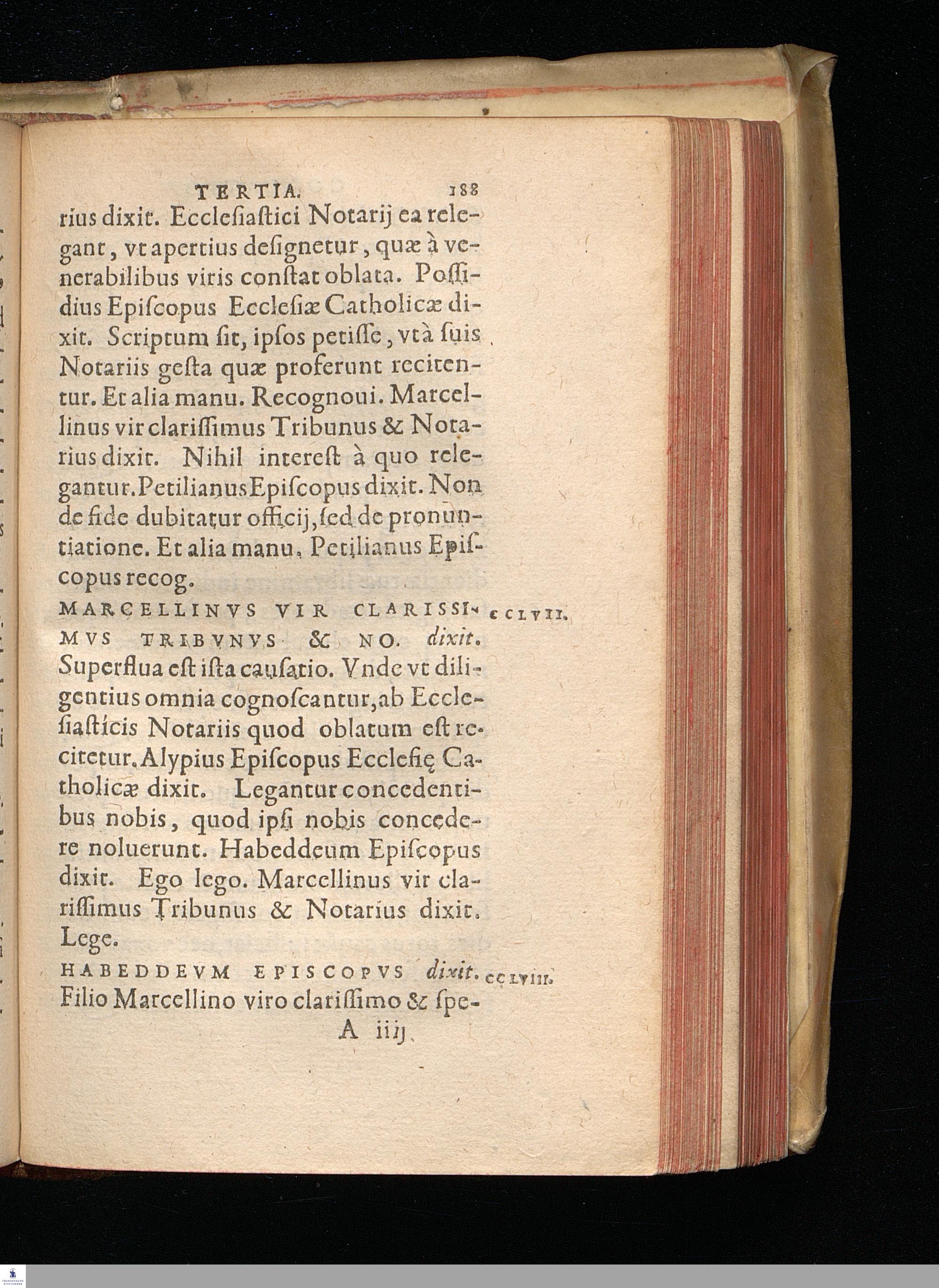 GESTA || COLLATIONIS || CHARTAGINI HABITÆ || HONORII CAESARIS IVSSV INTER || Catholicos & Donatistas coram Mar-||cellino V. C. Trib. & Not. || P. C. VARANIS V. C. || Opus non solum Theologis, sed etiam Iuris-||consultis Valde Vtile, || Papirij Massoni studio atq[ue] opera nunc primu[m] || in lucem editum. ||