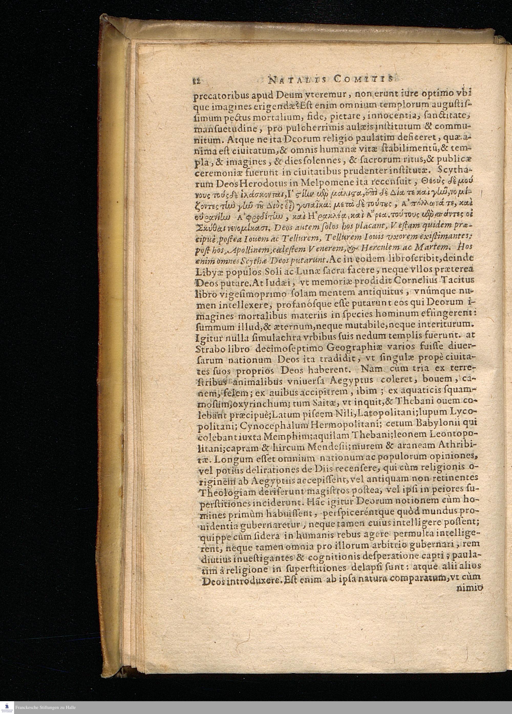 NATALIS CO-||MITIS MYTHOLO-||GIÆ, SIVE EXPLICA-||TIONIS FABVLARVM, || Libri decem: || In quibus omnia propè Naturalis & Moralis Philosophiæ || dogmata contenta fuisse demonstratur. || Nuper ab ipso autore recogniti & locupletati. || EIVSDEM LIBRI IIII. DE VENATIONE. || Cum Indice triplici, rerum memorabilium, vrbium & lo-||corum à variis heroibus denominatorum, ac plan-||tarum & animalium singulis Diis || dictatorum. || Opus cuiusuis facultatis studiosis perutile ac propè necessarium. || ACCESSIT G. LINOCERII MVSA-||RVM MYTHOLOGIA, ET ANONYMI || Observationum in totam de Diis Gentium || narrationem Libellus. ||