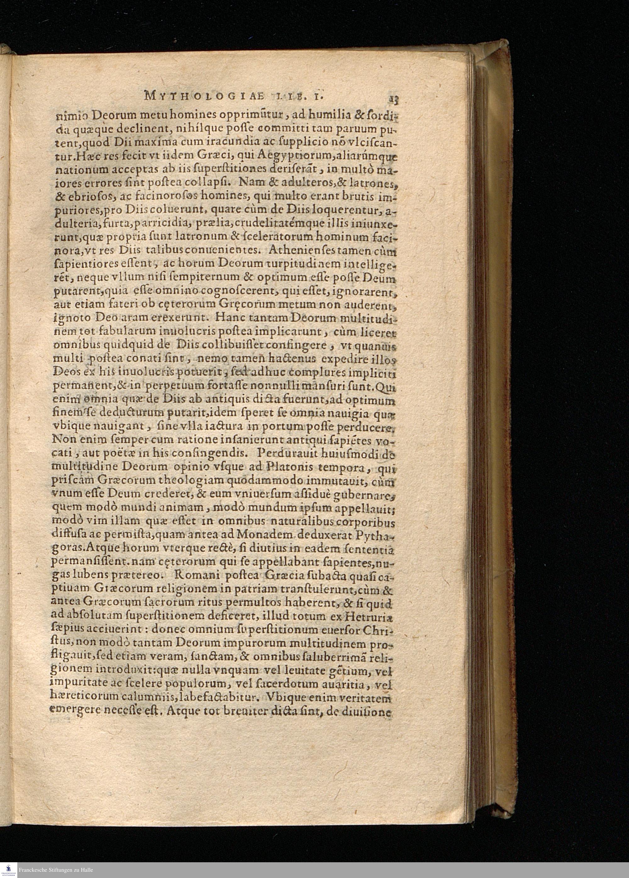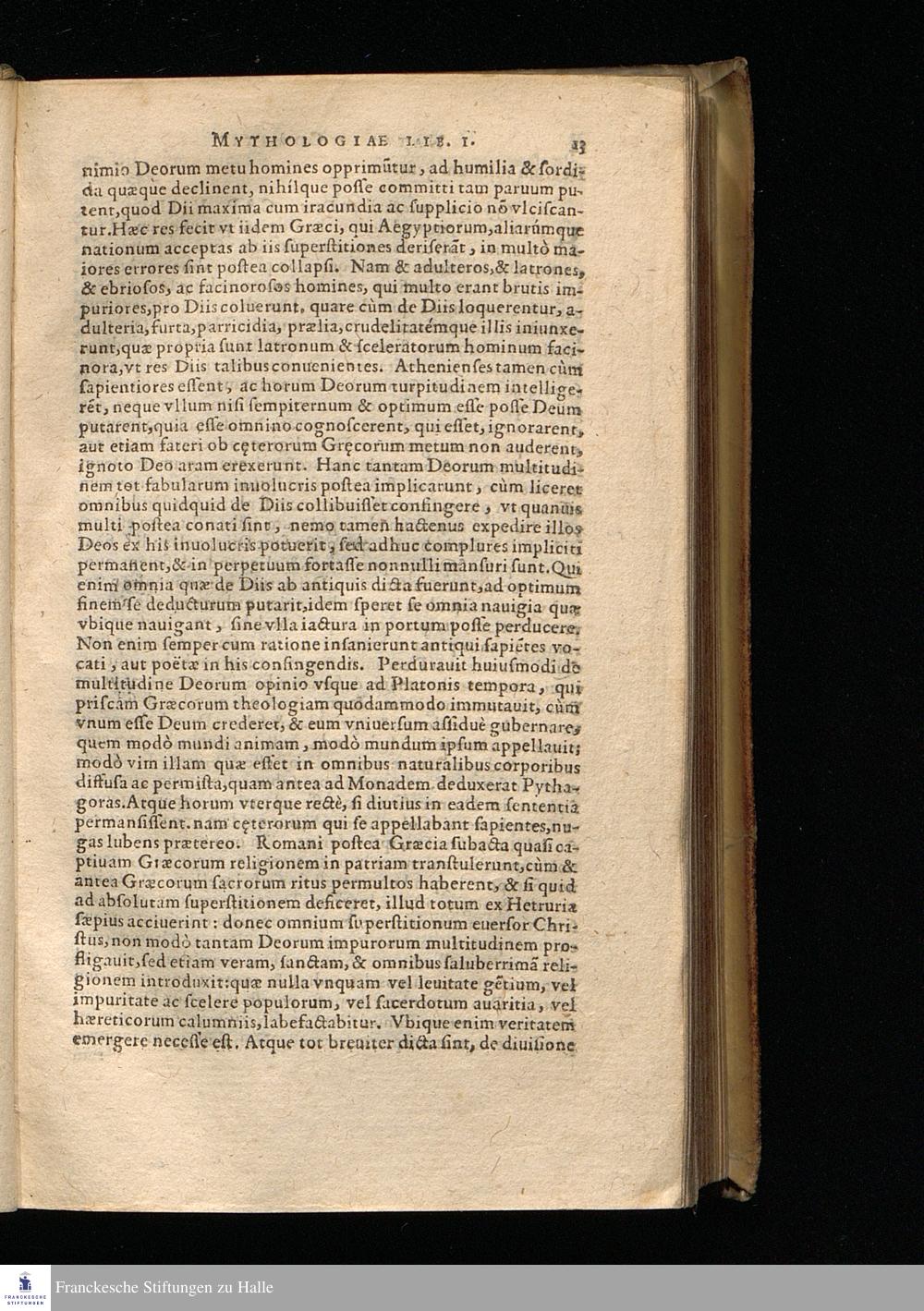 NATALIS CO-||MITIS MYTHOLO-||GIÆ, SIVE EXPLICA-||TIONIS FABVLARVM, || Libri decem: || In quibus omnia propè Naturalis & Moralis Philosophiæ || dogmata contenta fuisse demonstratur. || Nuper ab ipso autore recogniti & locupletati. || EIVSDEM LIBRI IIII. DE VENATIONE. || Cum Indice triplici, rerum memorabilium, vrbium & lo-||corum à variis heroibus denominatorum, ac plan-||tarum & animalium singulis Diis || dictatorum. || Opus cuiusuis facultatis studiosis perutile ac propè necessarium. || ACCESSIT G. LINOCERII MVSA-||RVM MYTHOLOGIA, ET ANONYMI || Observationum in totam de Diis Gentium || narrationem Libellus. ||
