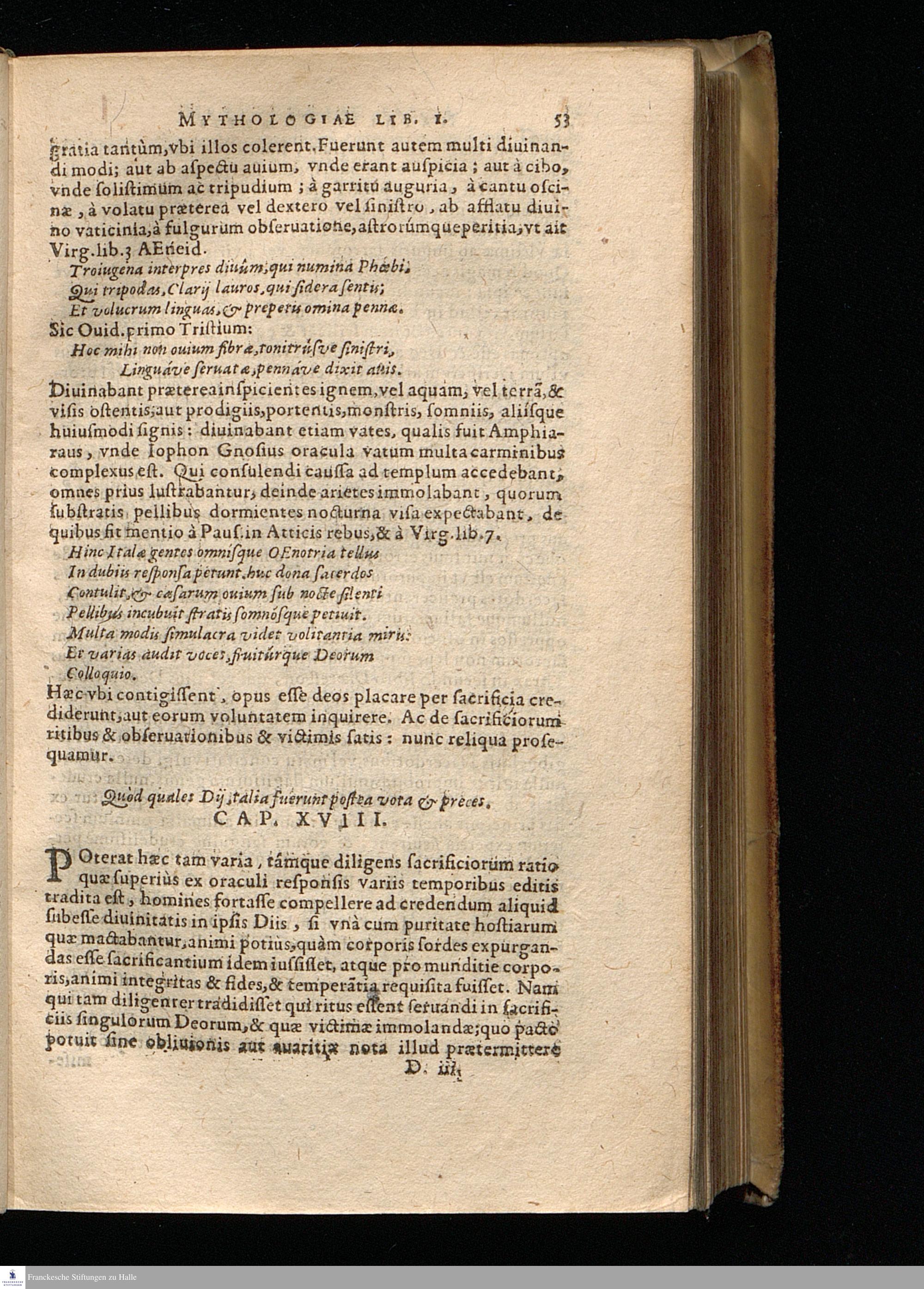NATALIS CO-||MITIS MYTHOLO-||GIÆ, SIVE EXPLICA-||TIONIS FABVLARVM, || Libri decem: || In quibus omnia propè Naturalis & Moralis Philosophiæ || dogmata contenta fuisse demonstratur. || Nuper ab ipso autore recogniti & locupletati. || EIVSDEM LIBRI IIII. DE VENATIONE. || Cum Indice triplici, rerum memorabilium, vrbium & lo-||corum à variis heroibus denominatorum, ac plan-||tarum & animalium singulis Diis || dictatorum. || Opus cuiusuis facultatis studiosis perutile ac propè necessarium. || ACCESSIT G. LINOCERII MVSA-||RVM MYTHOLOGIA, ET ANONYMI || Observationum in totam de Diis Gentium || narrationem Libellus. ||