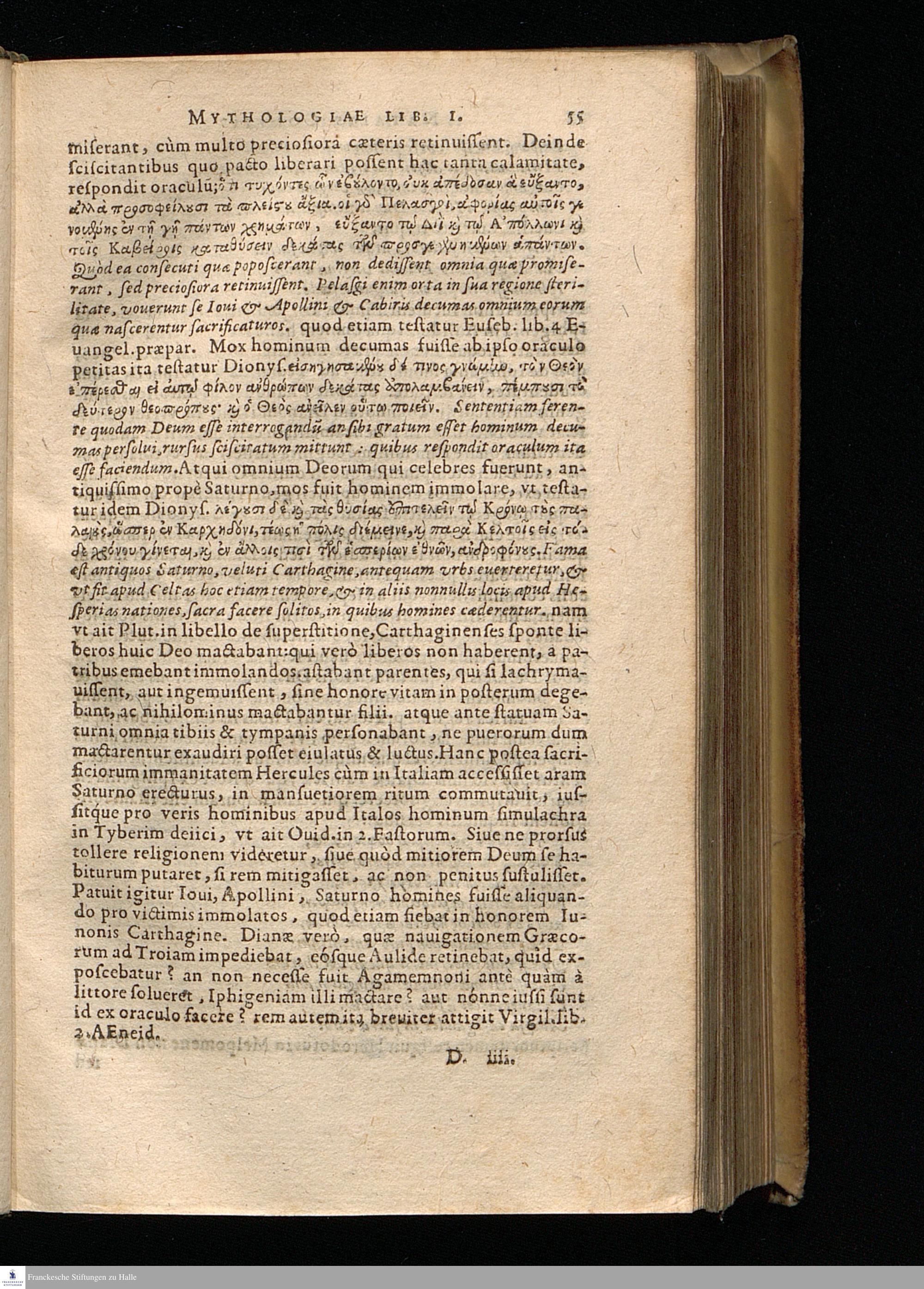 NATALIS CO-||MITIS MYTHOLO-||GIÆ, SIVE EXPLICA-||TIONIS FABVLARVM, || Libri decem: || In quibus omnia propè Naturalis & Moralis Philosophiæ || dogmata contenta fuisse demonstratur. || Nuper ab ipso autore recogniti & locupletati. || EIVSDEM LIBRI IIII. DE VENATIONE. || Cum Indice triplici, rerum memorabilium, vrbium & lo-||corum à variis heroibus denominatorum, ac plan-||tarum & animalium singulis Diis || dictatorum. || Opus cuiusuis facultatis studiosis perutile ac propè necessarium. || ACCESSIT G. LINOCERII MVSA-||RVM MYTHOLOGIA, ET ANONYMI || Observationum in totam de Diis Gentium || narrationem Libellus. ||