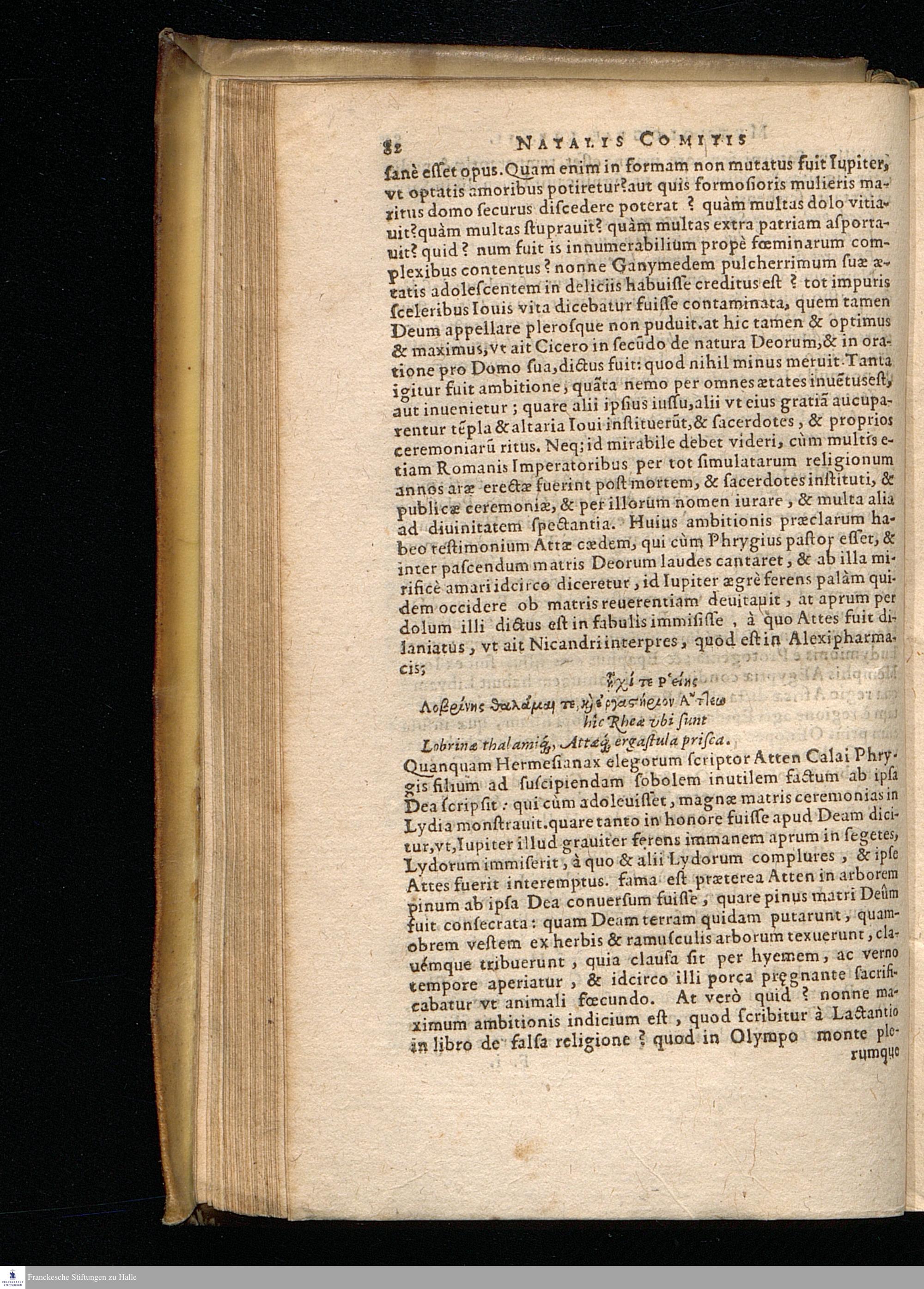 NATALIS CO-||MITIS MYTHOLO-||GIÆ, SIVE EXPLICA-||TIONIS FABVLARVM, || Libri decem: || In quibus omnia propè Naturalis & Moralis Philosophiæ || dogmata contenta fuisse demonstratur. || Nuper ab ipso autore recogniti & locupletati. || EIVSDEM LIBRI IIII. DE VENATIONE. || Cum Indice triplici, rerum memorabilium, vrbium & lo-||corum à variis heroibus denominatorum, ac plan-||tarum & animalium singulis Diis || dictatorum. || Opus cuiusuis facultatis studiosis perutile ac propè necessarium. || ACCESSIT G. LINOCERII MVSA-||RVM MYTHOLOGIA, ET ANONYMI || Observationum in totam de Diis Gentium || narrationem Libellus. ||