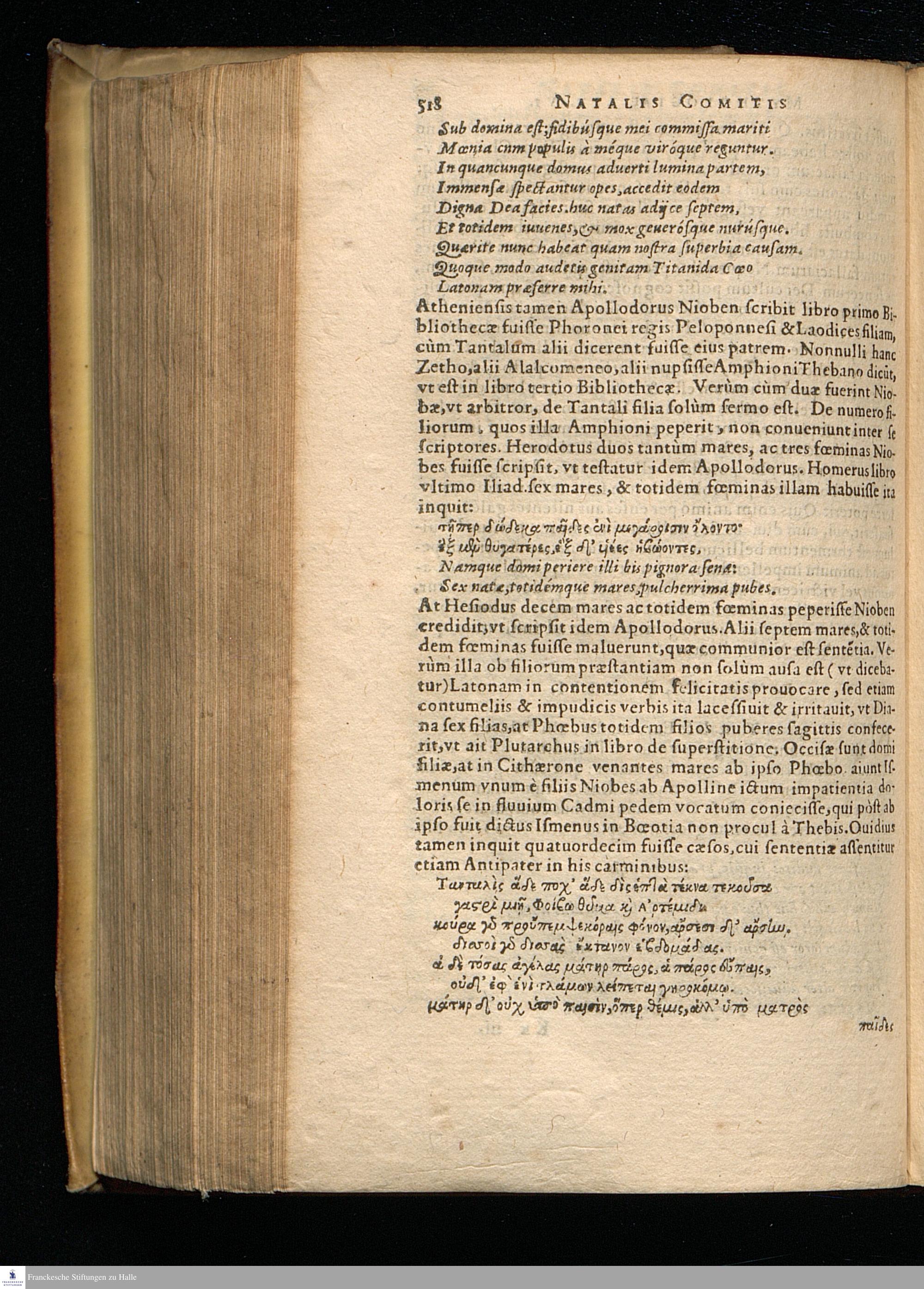 NATALIS CO-||MITIS MYTHOLO-||GIÆ, SIVE EXPLICA-||TIONIS FABVLARVM, || Libri decem: || In quibus omnia propè Naturalis & Moralis Philosophiæ || dogmata contenta fuisse demonstratur. || Nuper ab ipso autore recogniti & locupletati. || EIVSDEM LIBRI IIII. DE VENATIONE. || Cum Indice triplici, rerum memorabilium, vrbium & lo-||corum à variis heroibus denominatorum, ac plan-||tarum & animalium singulis Diis || dictatorum. || Opus cuiusuis facultatis studiosis perutile ac propè necessarium. || ACCESSIT G. LINOCERII MVSA-||RVM MYTHOLOGIA, ET ANONYMI || Observationum in totam de Diis Gentium || narrationem Libellus. ||