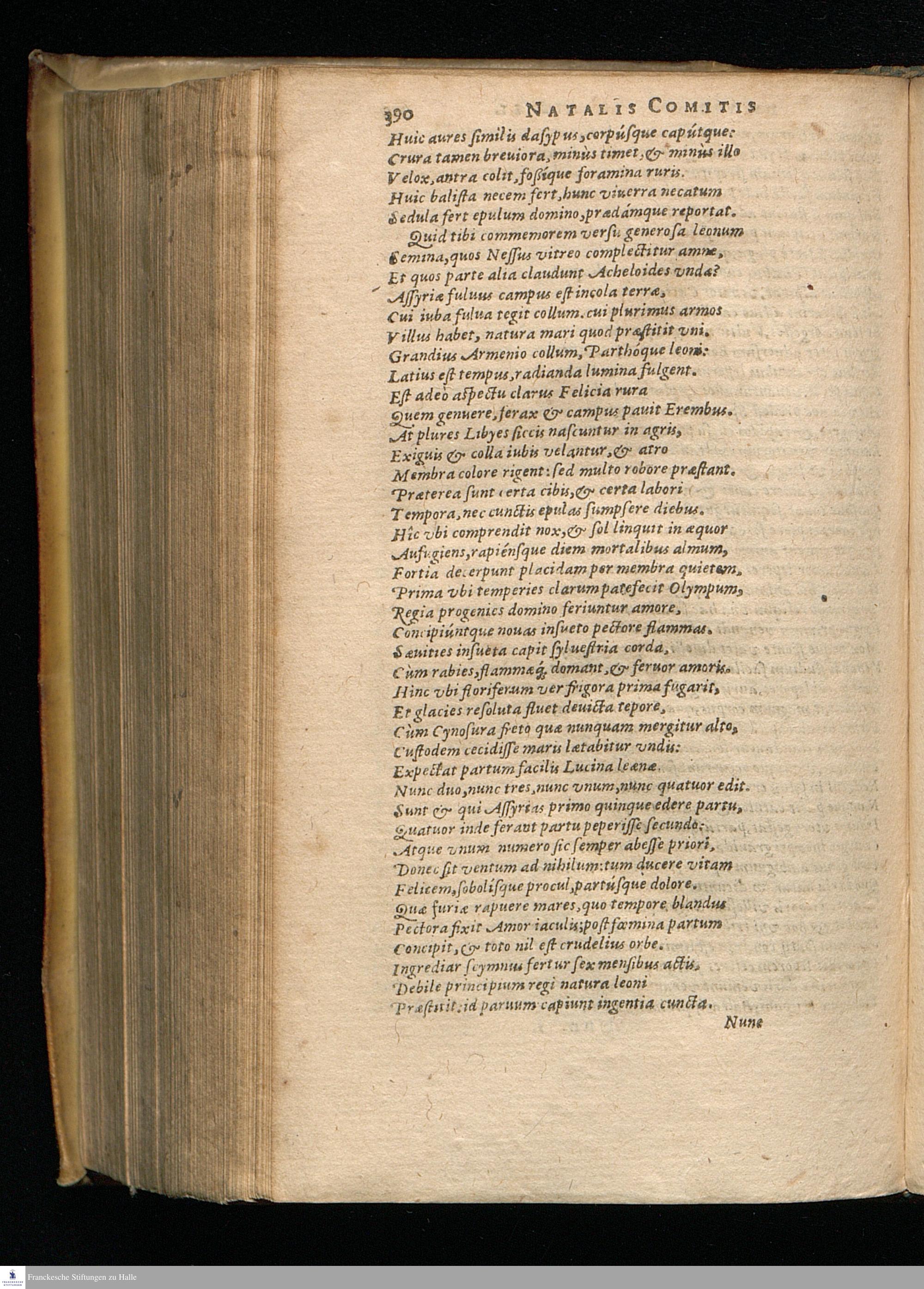 NATALIS CO-||MITIS MYTHOLO-||GIÆ, SIVE EXPLICA-||TIONIS FABVLARVM, || Libri decem: || In quibus omnia propè Naturalis & Moralis Philosophiæ || dogmata contenta fuisse demonstratur. || Nuper ab ipso autore recogniti & locupletati. || EIVSDEM LIBRI IIII. DE VENATIONE. || Cum Indice triplici, rerum memorabilium, vrbium & lo-||corum à variis heroibus denominatorum, ac plan-||tarum & animalium singulis Diis || dictatorum. || Opus cuiusuis facultatis studiosis perutile ac propè necessarium. || ACCESSIT G. LINOCERII MVSA-||RVM MYTHOLOGIA, ET ANONYMI || Observationum in totam de Diis Gentium || narrationem Libellus. ||