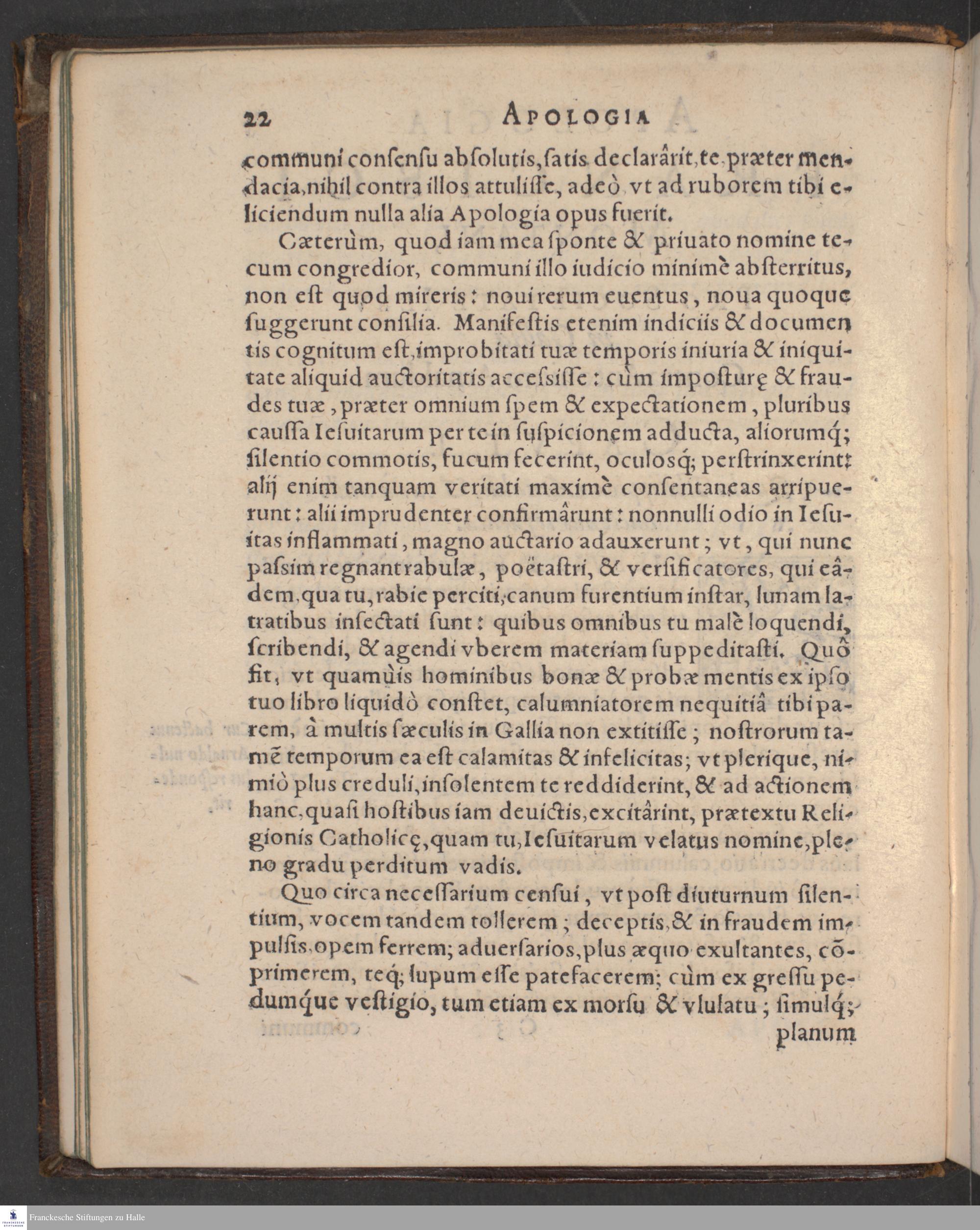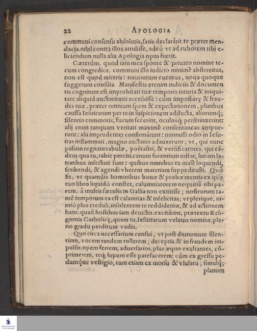 APOLOGIA || FRANCISCI || MONTANI PRO SOCIETATE || IESV IN GALLIA. || CONTRA ANTONII ARNALDI || Aduocati Parisiensis Philippicam. || Ex Gallico in Latinum || translata. || Accessit Appendix ex Historia de facto Ioannis || Schattelii, studiosi Parisiensis. ||