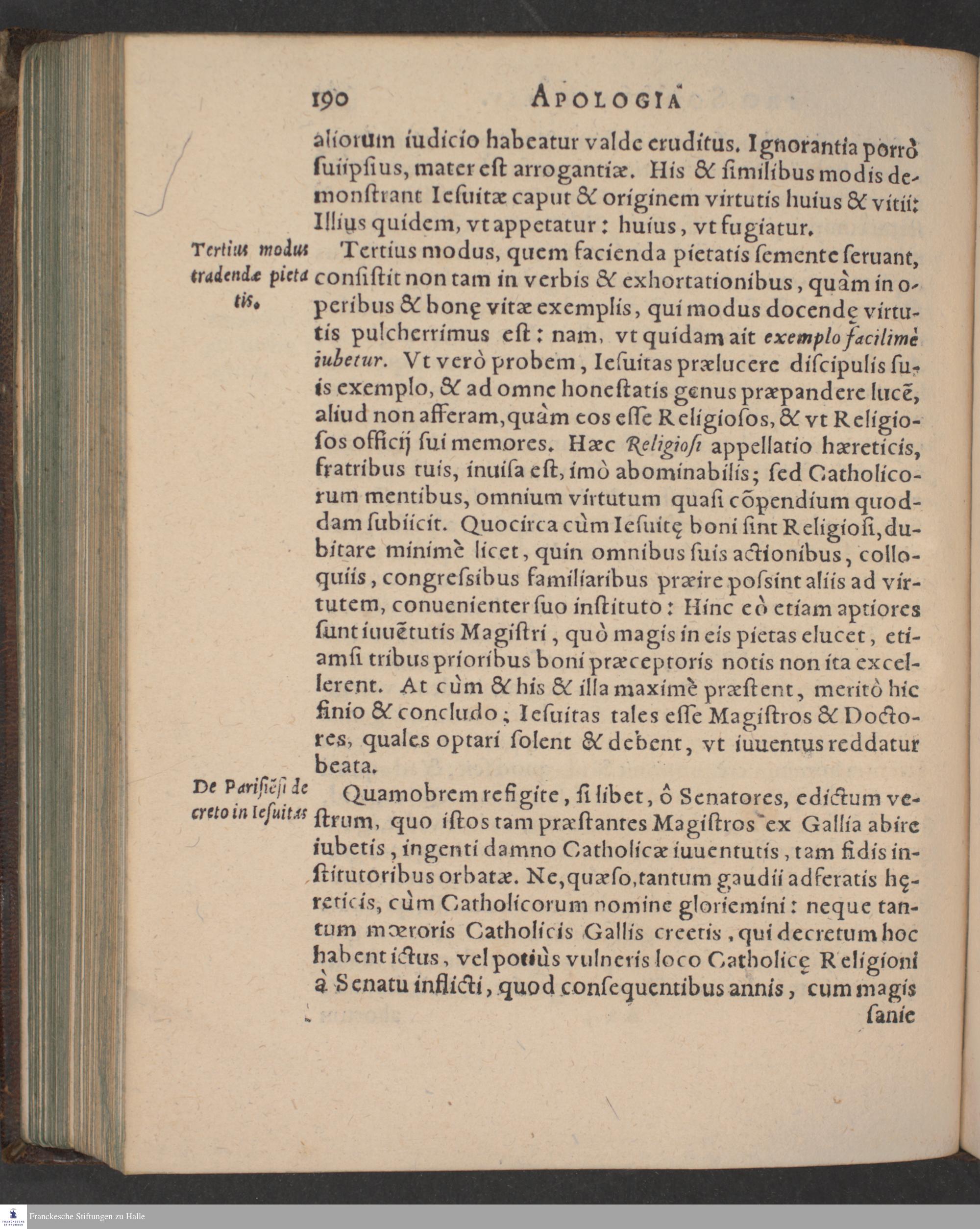APOLOGIA || FRANCISCI || MONTANI PRO SOCIETATE || IESV IN GALLIA. || CONTRA ANTONII ARNALDI || Aduocati Parisiensis Philippicam. || Ex Gallico in Latinum || translata. || Accessit Appendix ex Historia de facto Ioannis || Schattelii, studiosi Parisiensis. ||