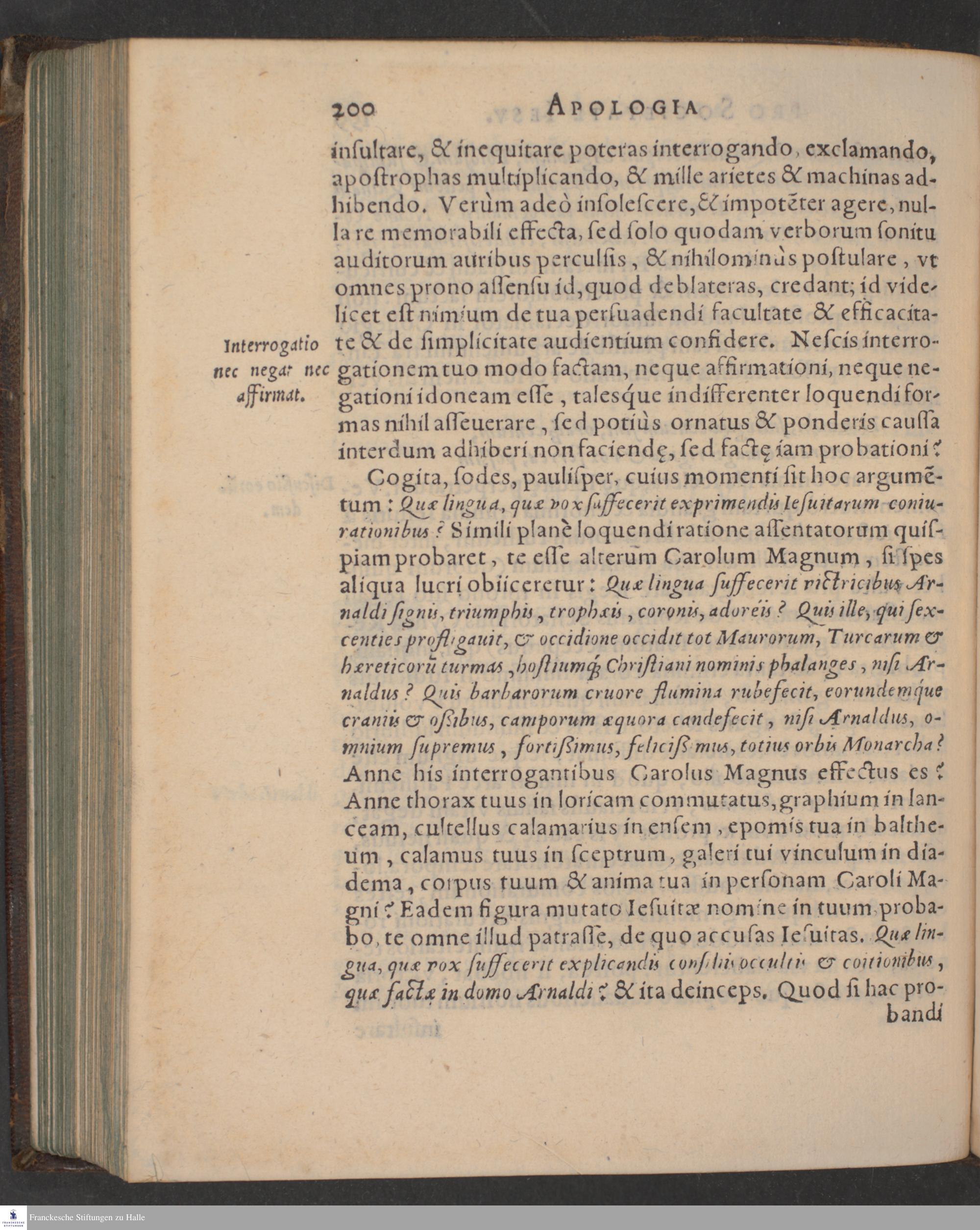APOLOGIA || FRANCISCI || MONTANI PRO SOCIETATE || IESV IN GALLIA. || CONTRA ANTONII ARNALDI || Aduocati Parisiensis Philippicam. || Ex Gallico in Latinum || translata. || Accessit Appendix ex Historia de facto Ioannis || Schattelii, studiosi Parisiensis. ||