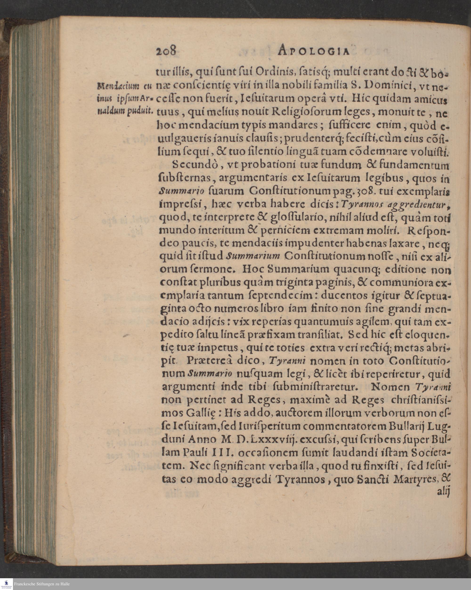 APOLOGIA || FRANCISCI || MONTANI PRO SOCIETATE || IESV IN GALLIA. || CONTRA ANTONII ARNALDI || Aduocati Parisiensis Philippicam. || Ex Gallico in Latinum || translata. || Accessit Appendix ex Historia de facto Ioannis || Schattelii, studiosi Parisiensis. ||
