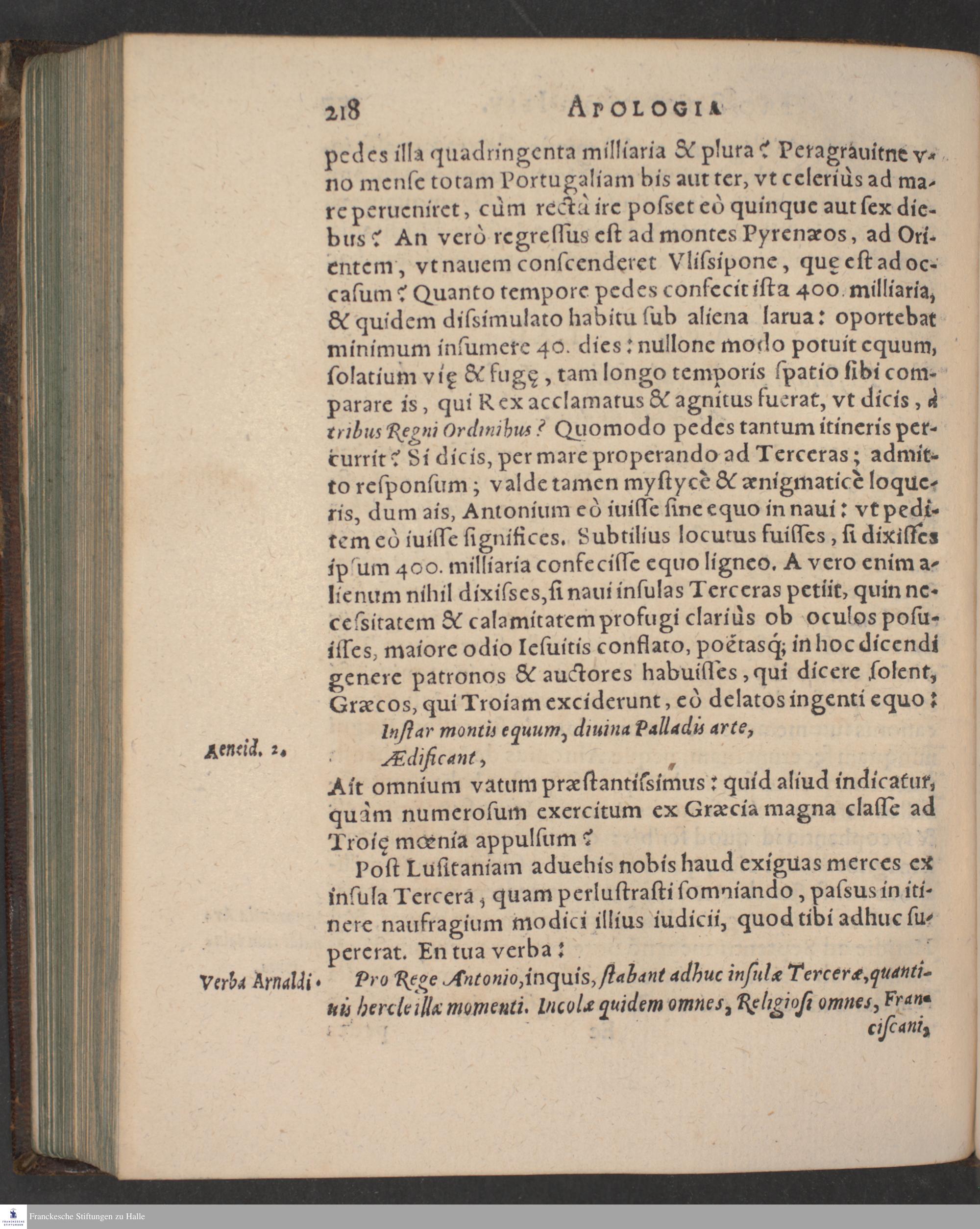 APOLOGIA || FRANCISCI || MONTANI PRO SOCIETATE || IESV IN GALLIA. || CONTRA ANTONII ARNALDI || Aduocati Parisiensis Philippicam. || Ex Gallico in Latinum || translata. || Accessit Appendix ex Historia de facto Ioannis || Schattelii, studiosi Parisiensis. ||