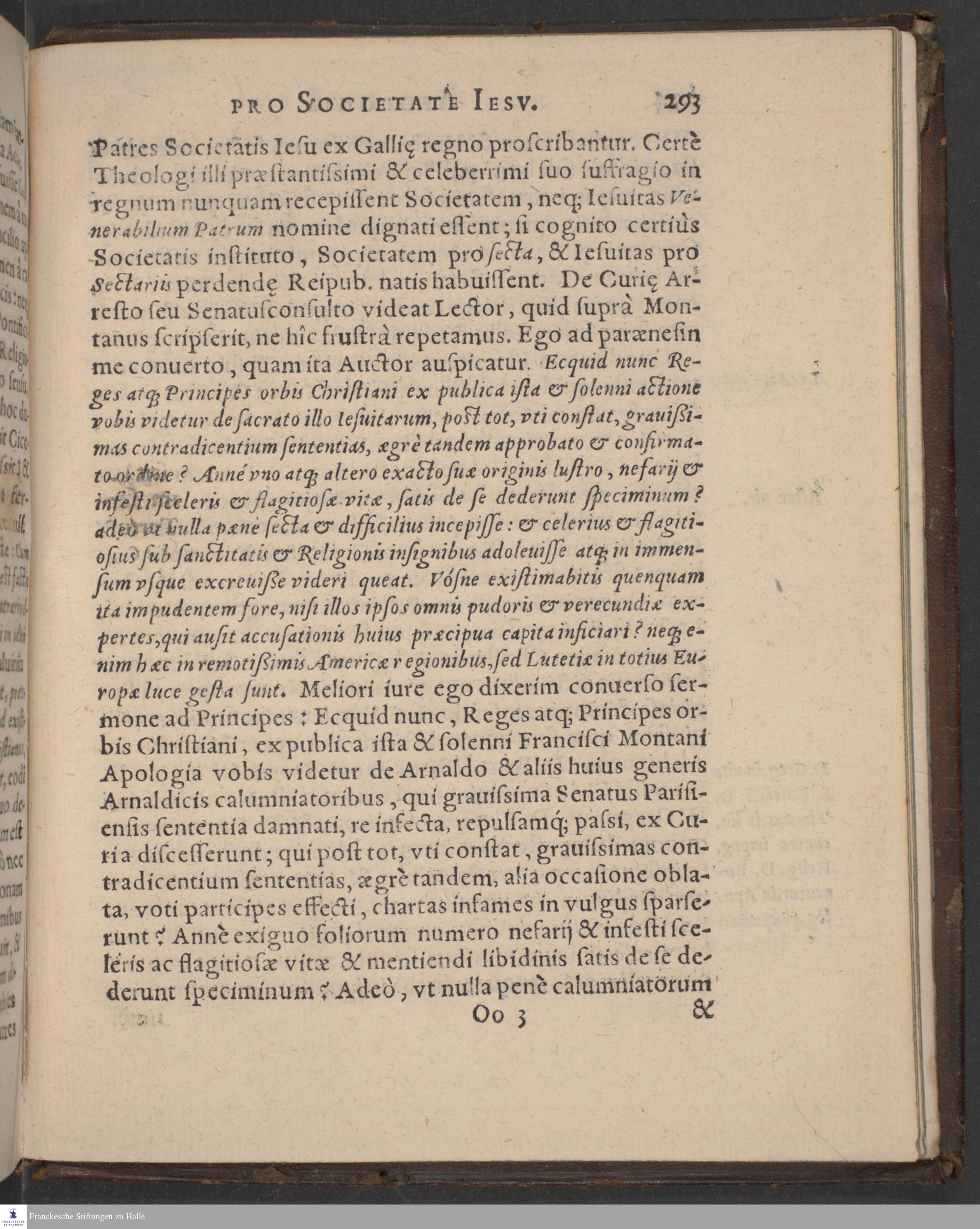 APOLOGIA || FRANCISCI || MONTANI PRO SOCIETATE || IESV IN GALLIA. || CONTRA ANTONII ARNALDI || Aduocati Parisiensis Philippicam. || Ex Gallico in Latinum || translata. || Accessit Appendix ex Historia de facto Ioannis || Schattelii, studiosi Parisiensis. ||